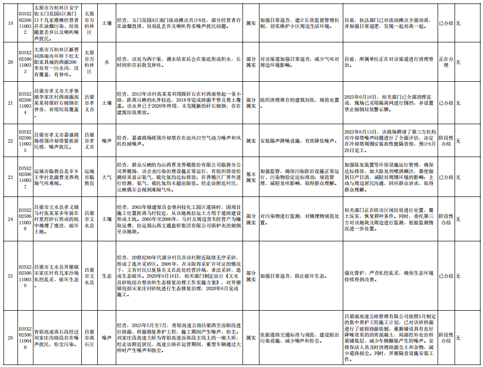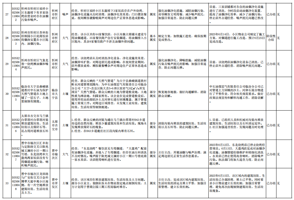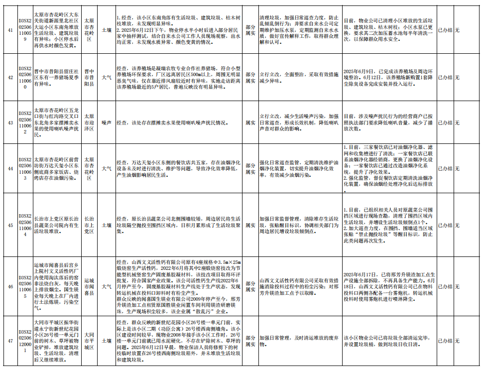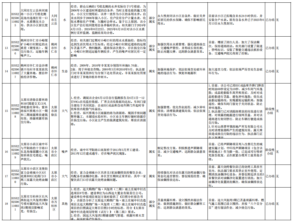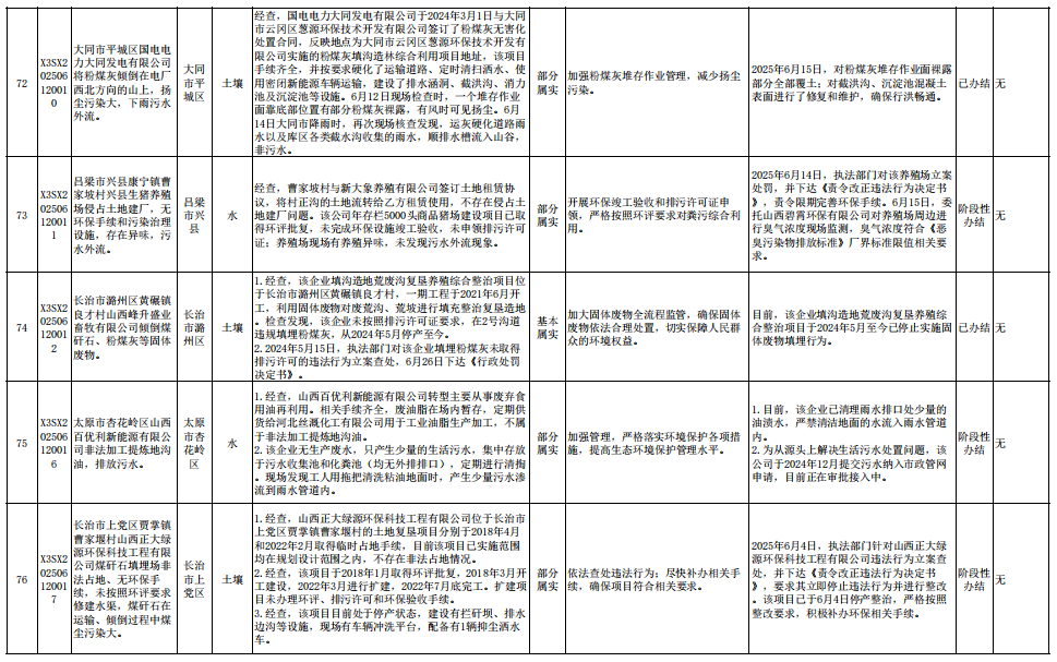 中央生态环境保护督察组群众信访举报转办和边督边改公开情况一览表(第15批 2025年6月20日)
