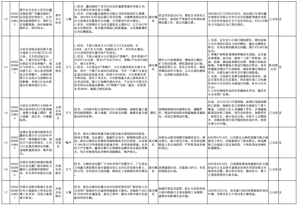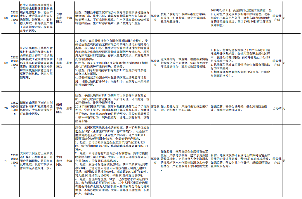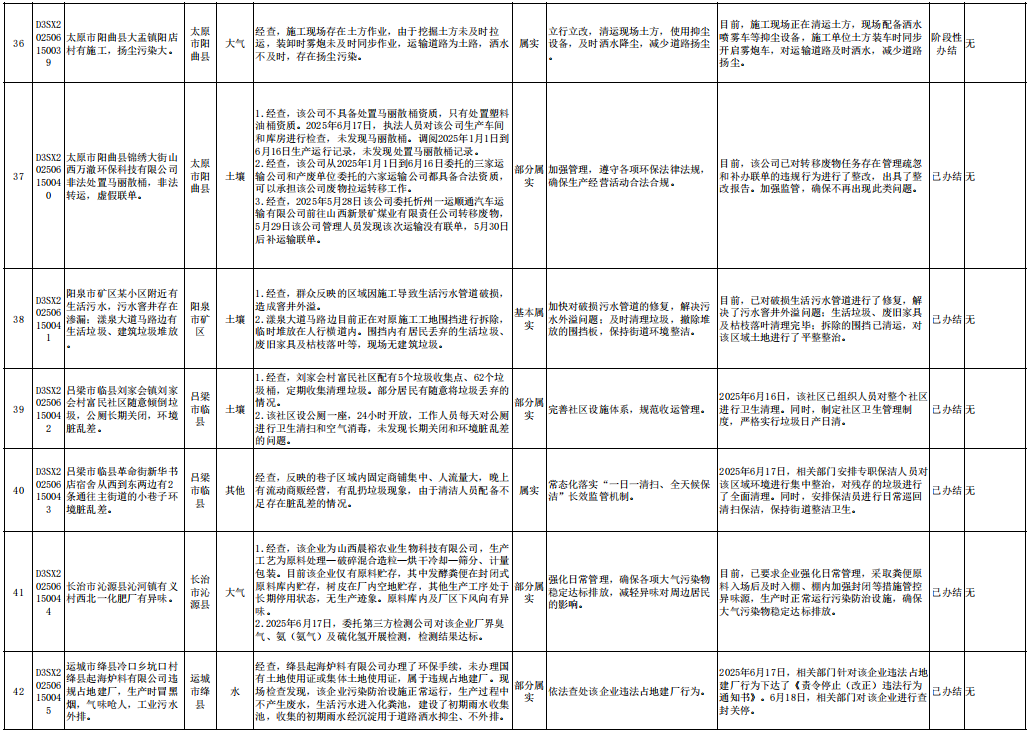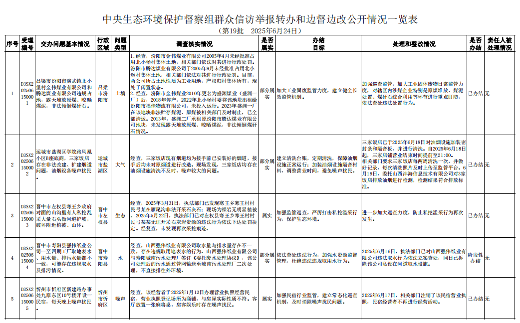 中央生态环境保护督察组群众信访举报转办和边督边改公开情况一览表(第19批 2025年6月24日)