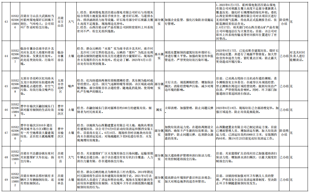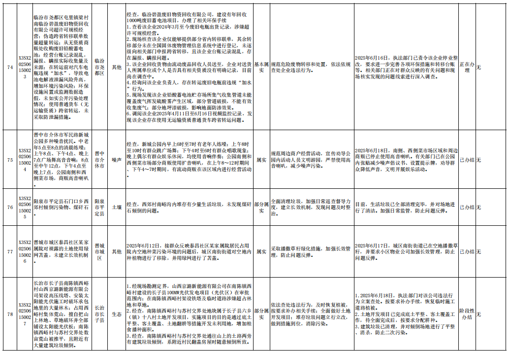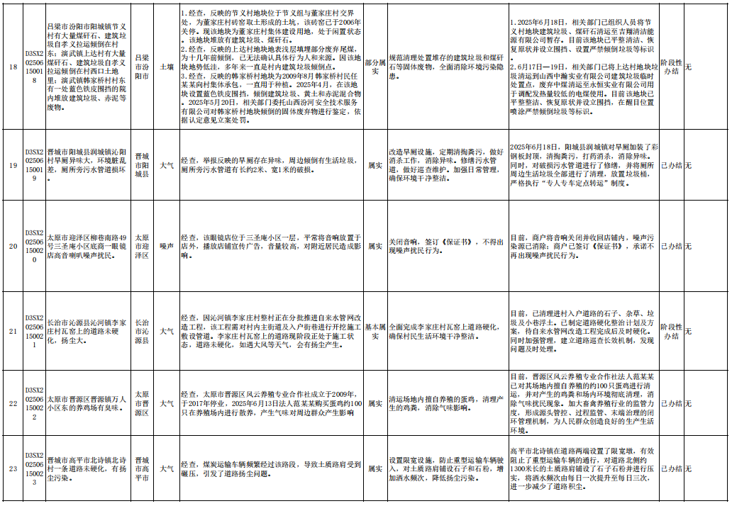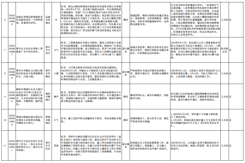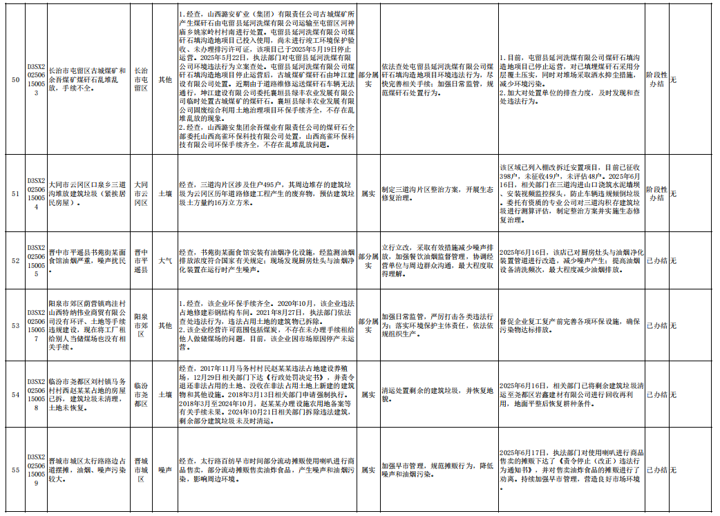 中央生态环境保护督察组群众信访举报转办和边督边改公开情况一览表(第19批 2025年6月24日)