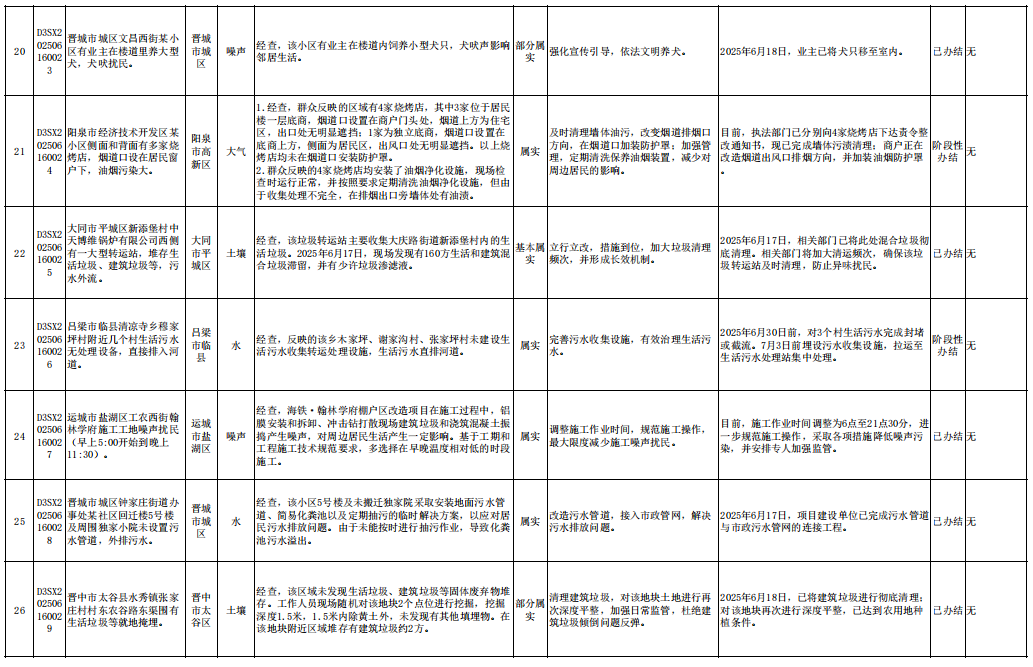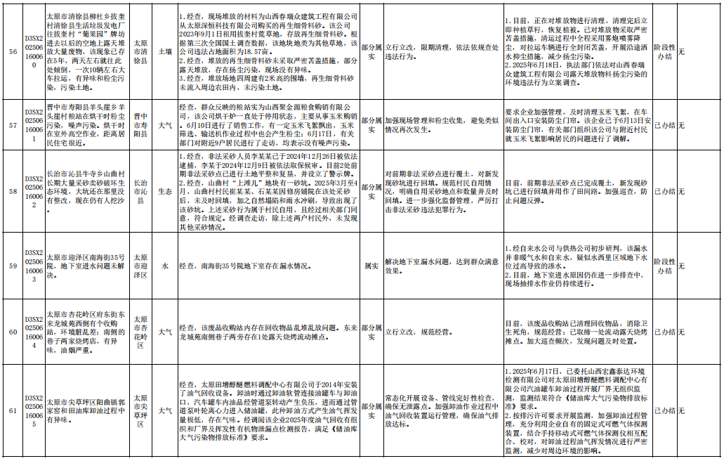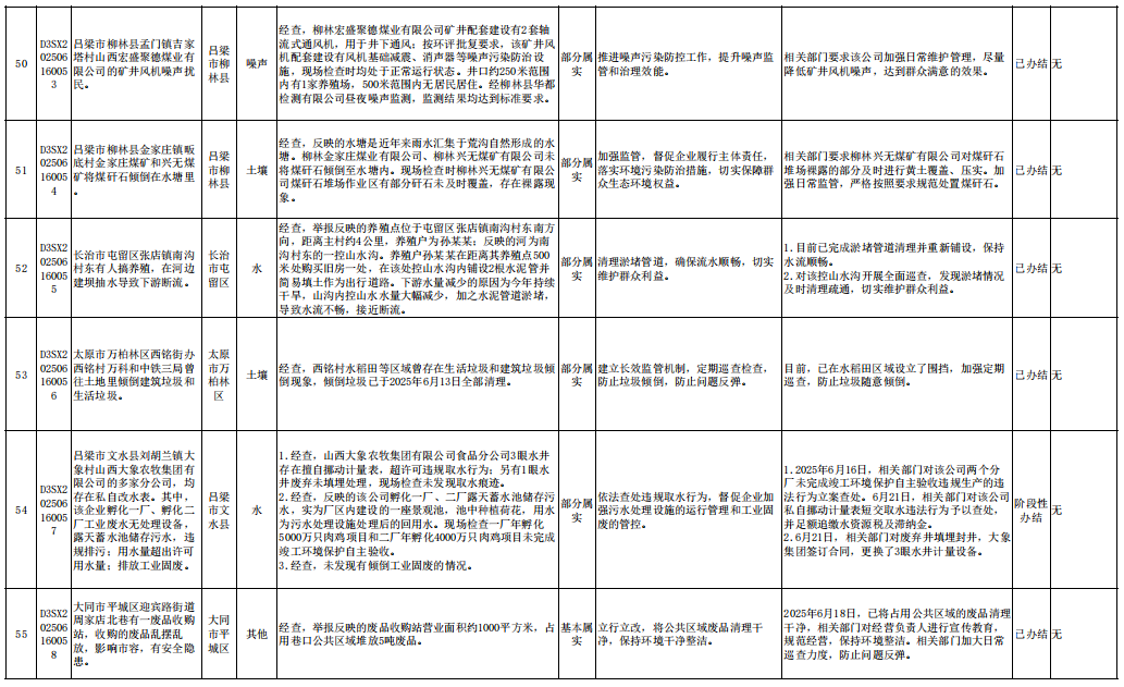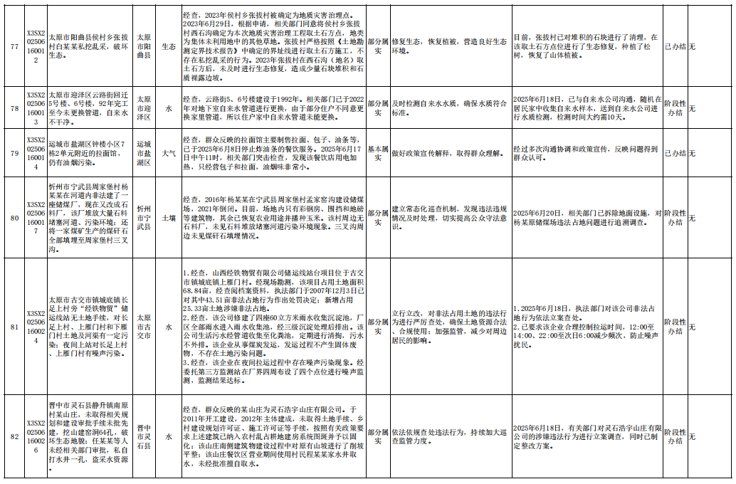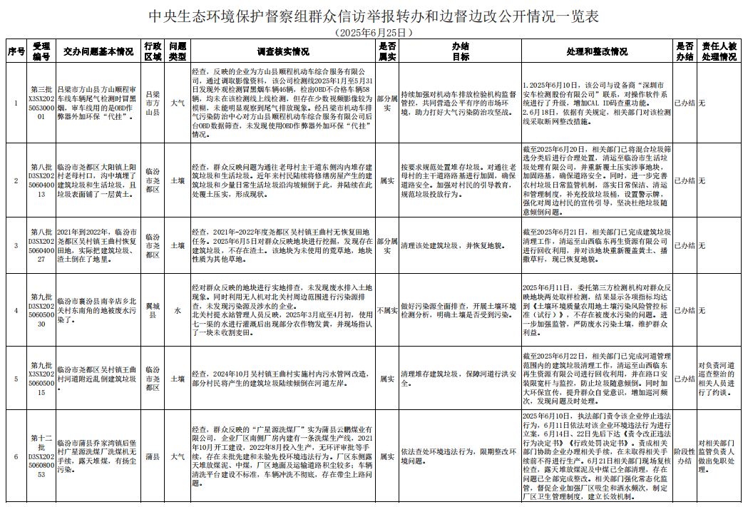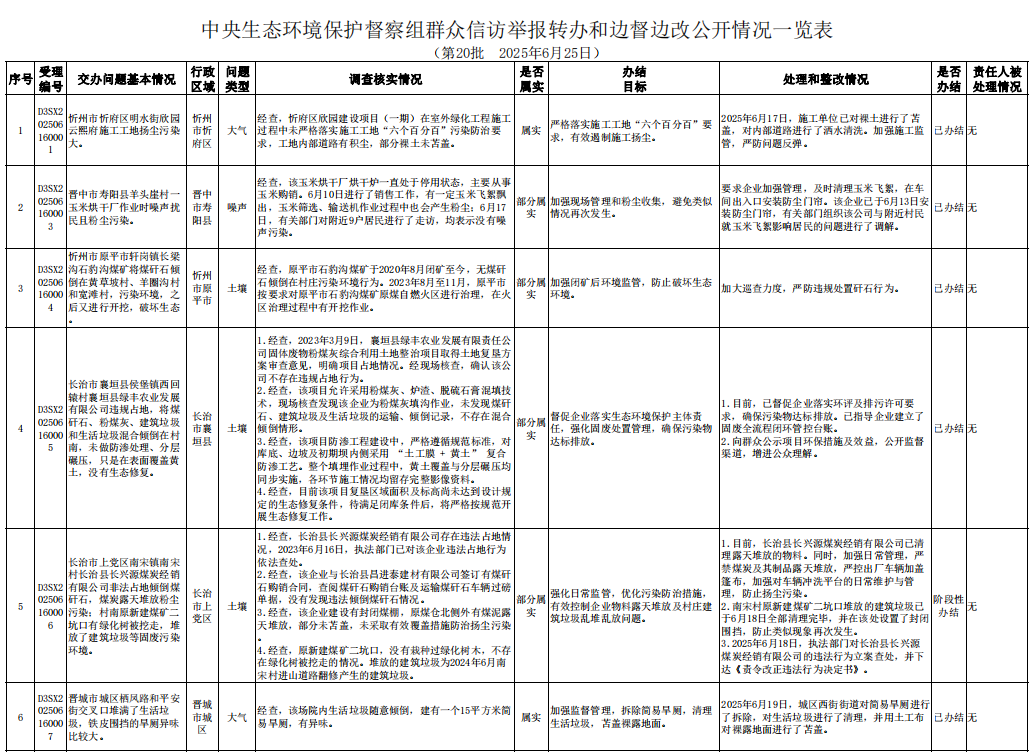 中央生态环境保护督察组群众信访举报转办和边督边改公开情况一览表(第20批 2025年6月25日)