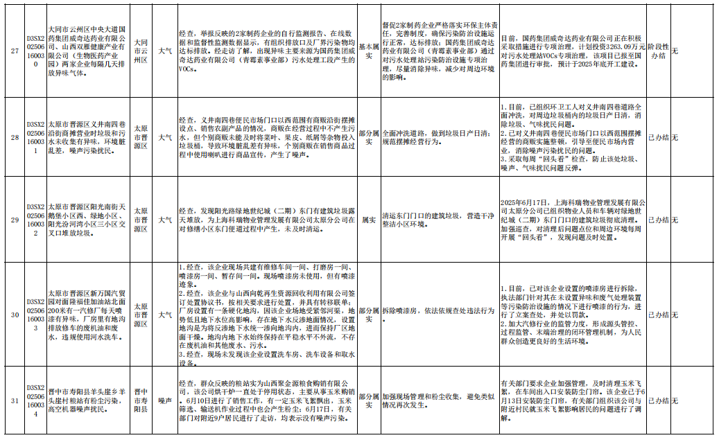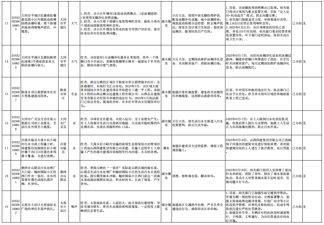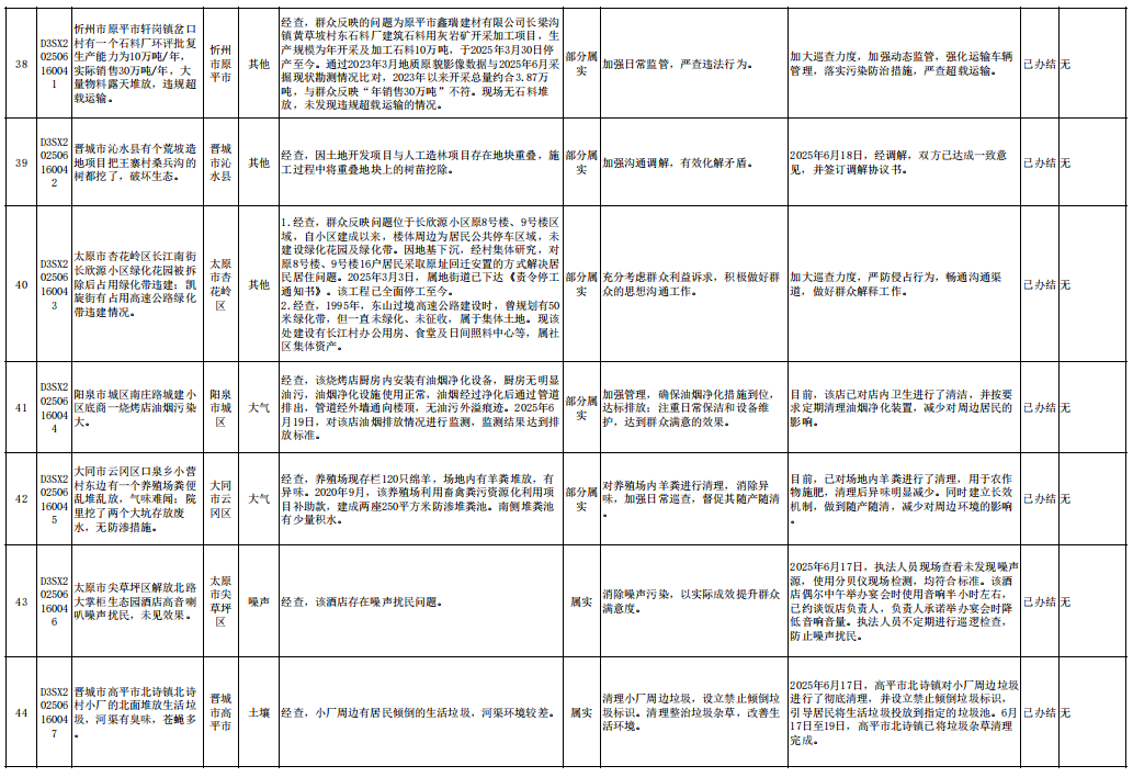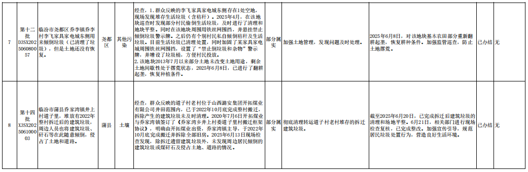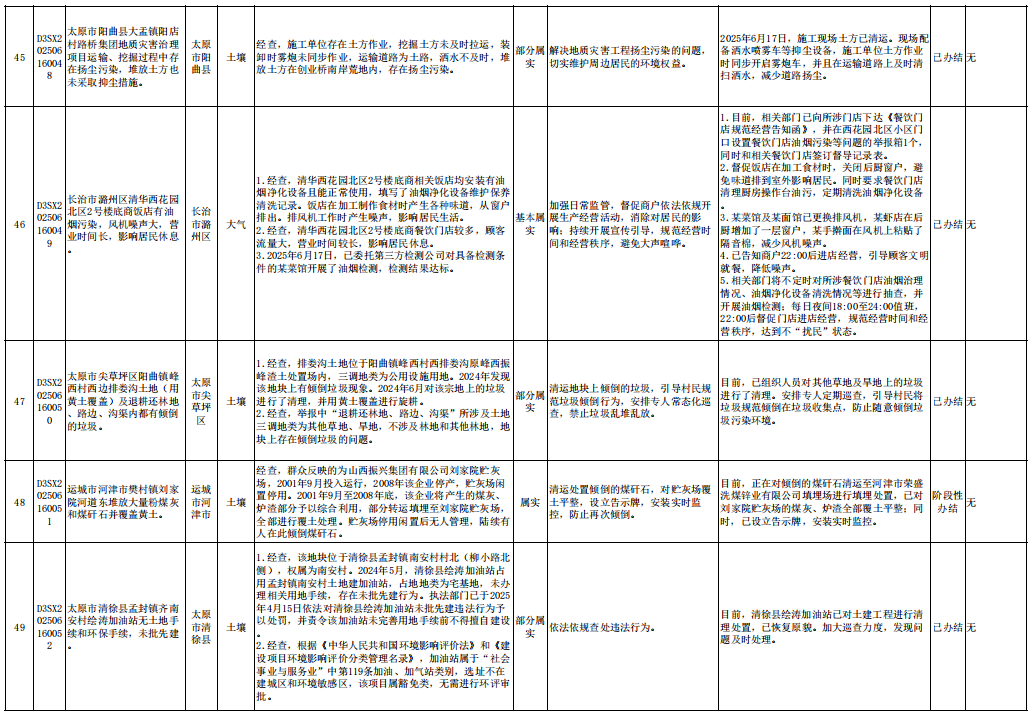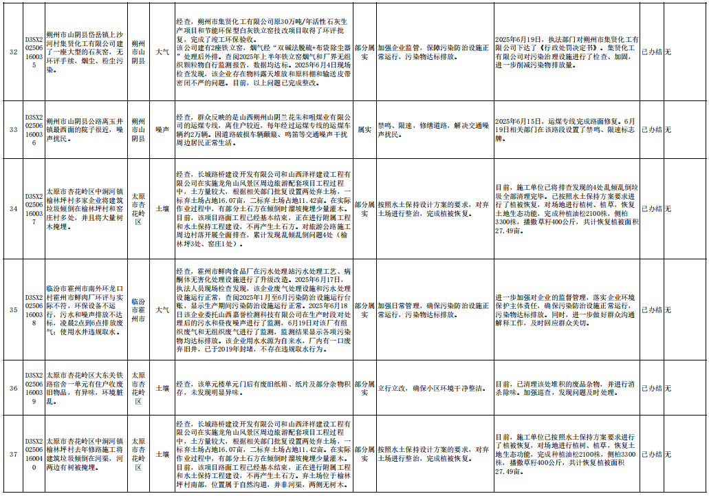 中央生态环境保护督察组群众信访举报转办和边督边改公开情况一览表(第20批 2025年6月25日)