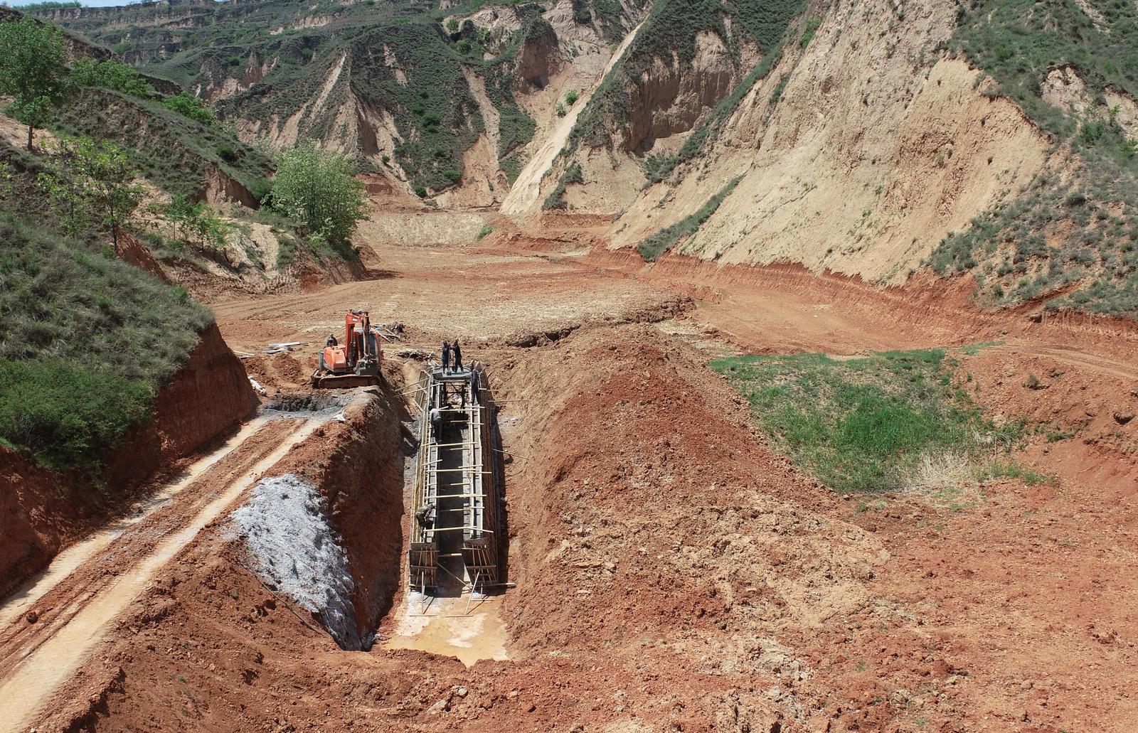 施工人员秦真龙正操作全站仪精准测量涵洞进口高程,司机李贵云驾驶装载机运送石料,豆大的汗珠随着脸颊不住地往下淌。“别小看这道坝,将来能拦蓄65万立方米洪水,淤出5.2公顷良田呢!”他指着沟道下游的设计图纸介绍,枢纽工程包含大坝、卧管涵洞、溢洪道“三大件”,建成后不仅能有效控制水土流失,还能为周边农田提供稳定的灌溉水源。