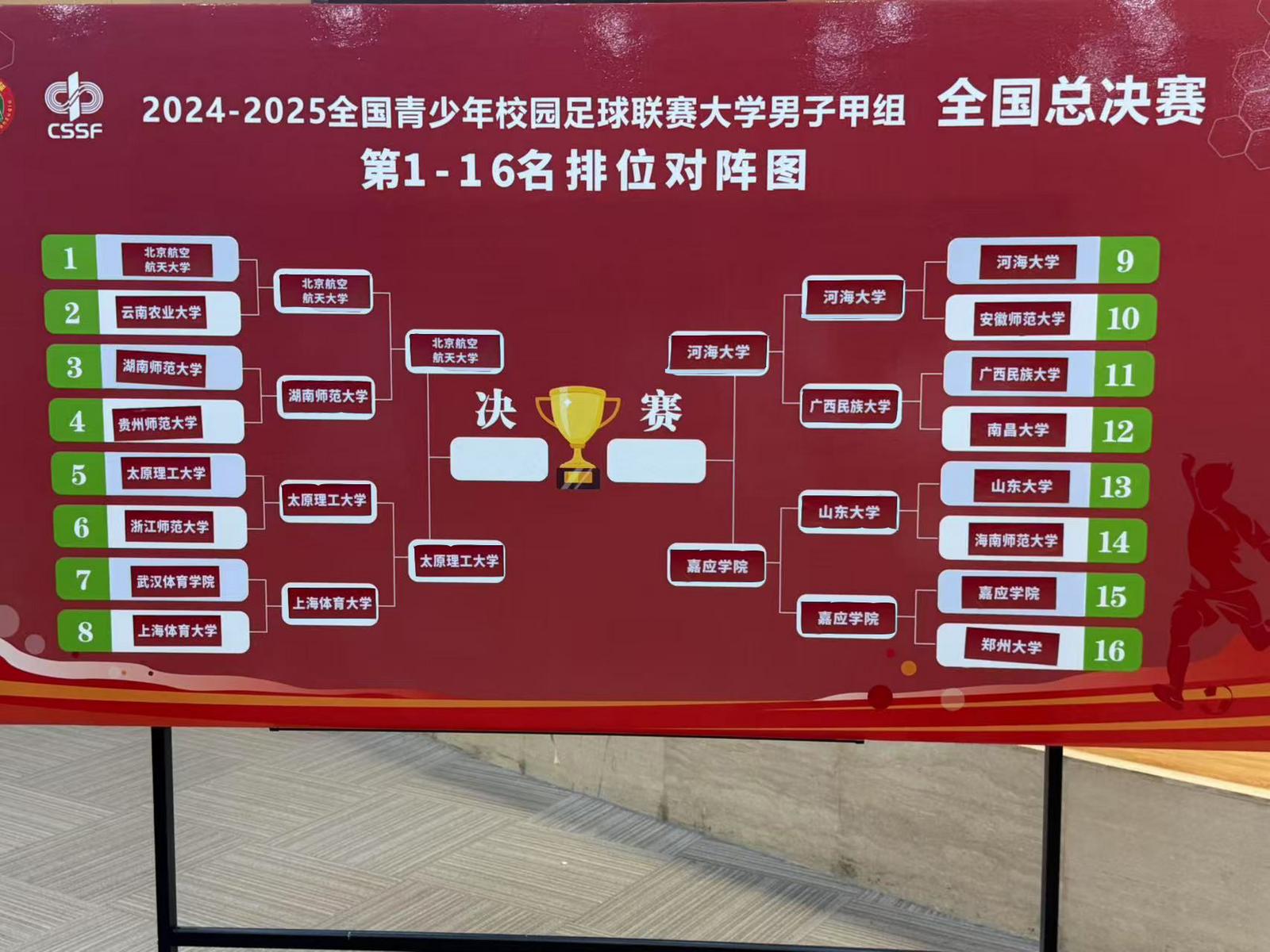 全国青少年校园足球联赛由教育部主管,中国学生体育联合会主办,是全国最高水平的校园足球赛事。大学男子甲组全国总决赛汇聚了全国高校的顶尖强队,参赛队伍均为各省冠军。比赛分为小组赛和淘汰赛两个阶段,29支球队被分成八个小组,进行单循环赛,各小组前两名晋级16强。16强产生后,通过交叉对决的方式,依次进行八强赛、半决赛和决赛,直至决出冠军。
