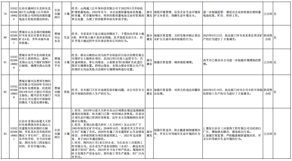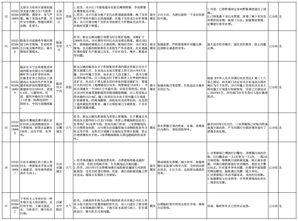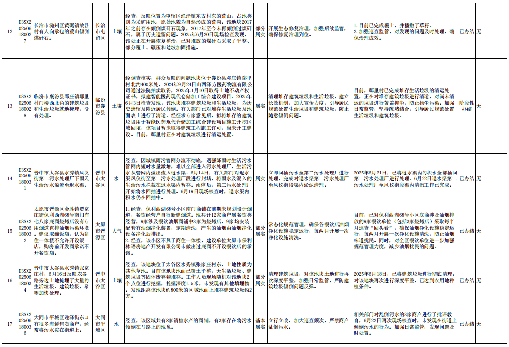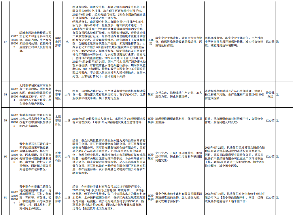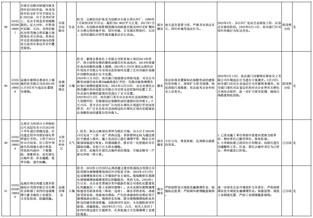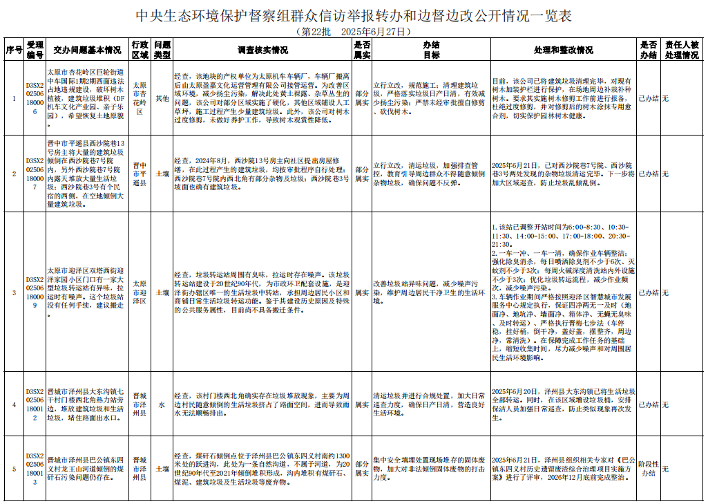中央生态环境保护督察组群众信访举报转办和边督边改公开情况一览表(第22批 2025年6月27日)