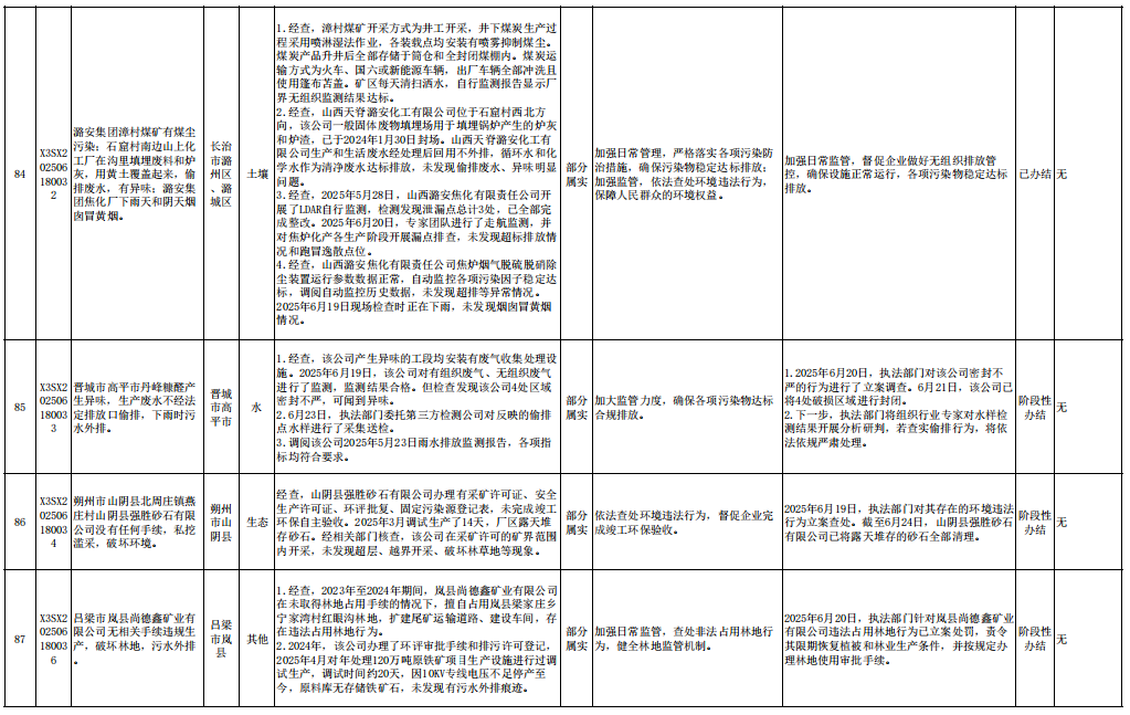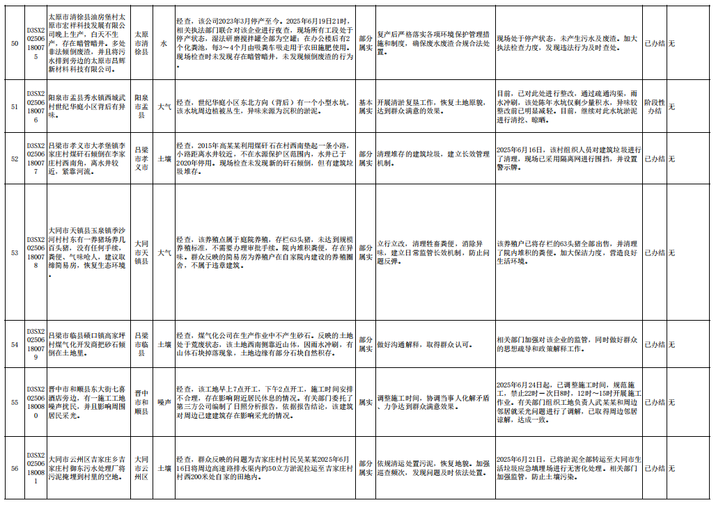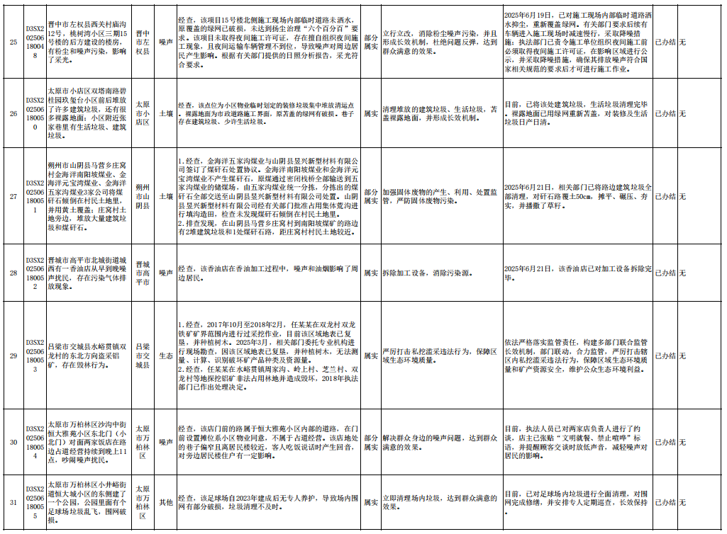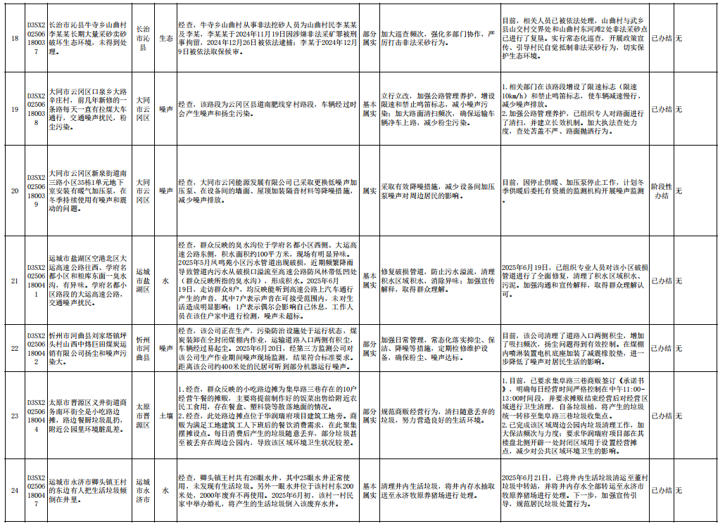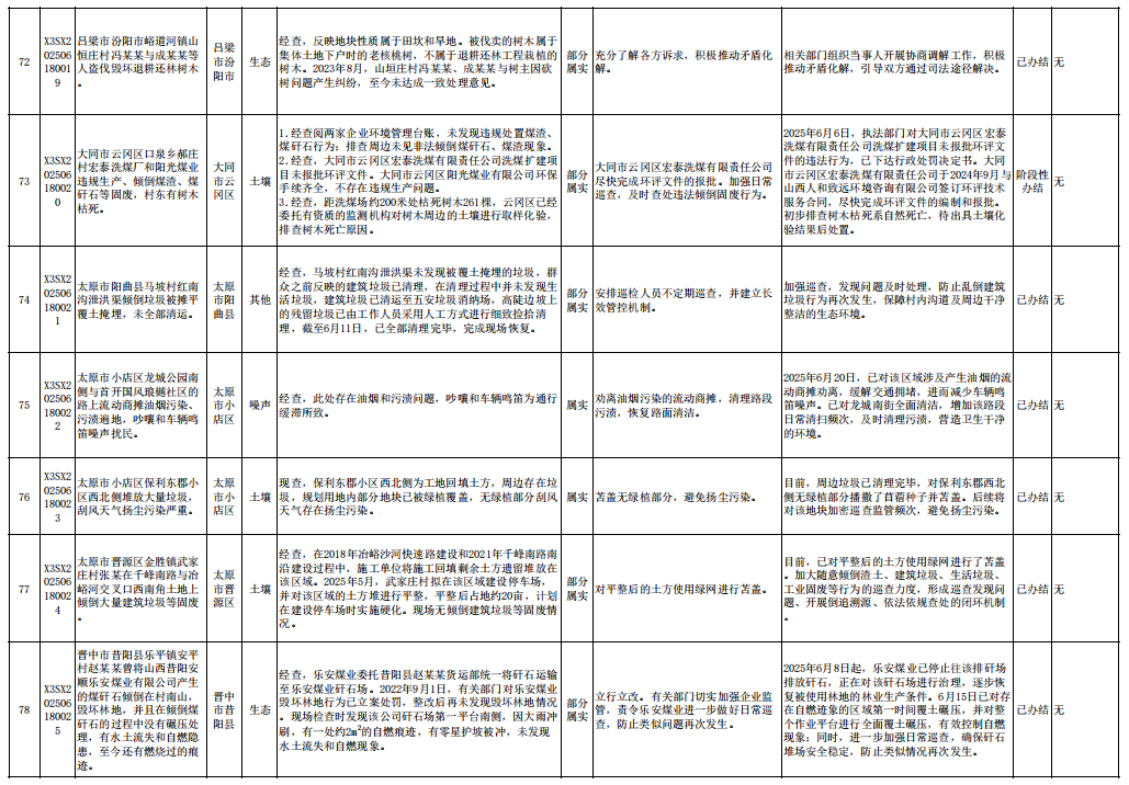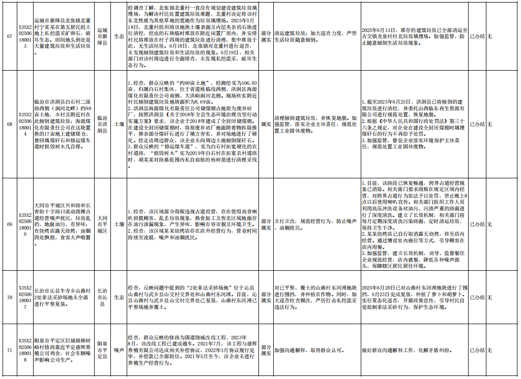 中央生态环境保护督察组群众信访举报转办和边督边改公开情况一览表(第22批 2025年6月27日)