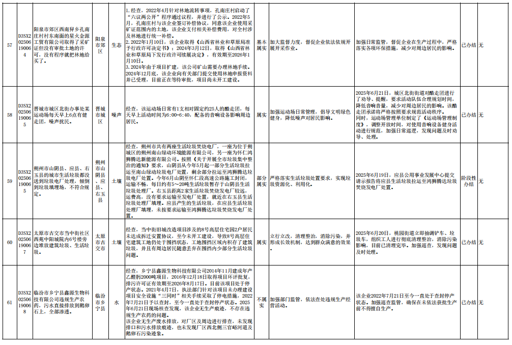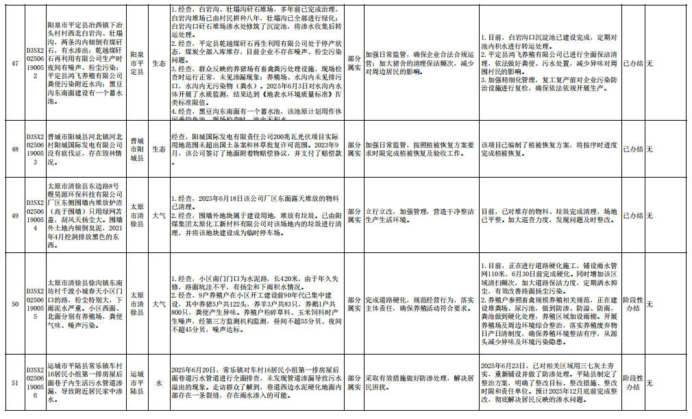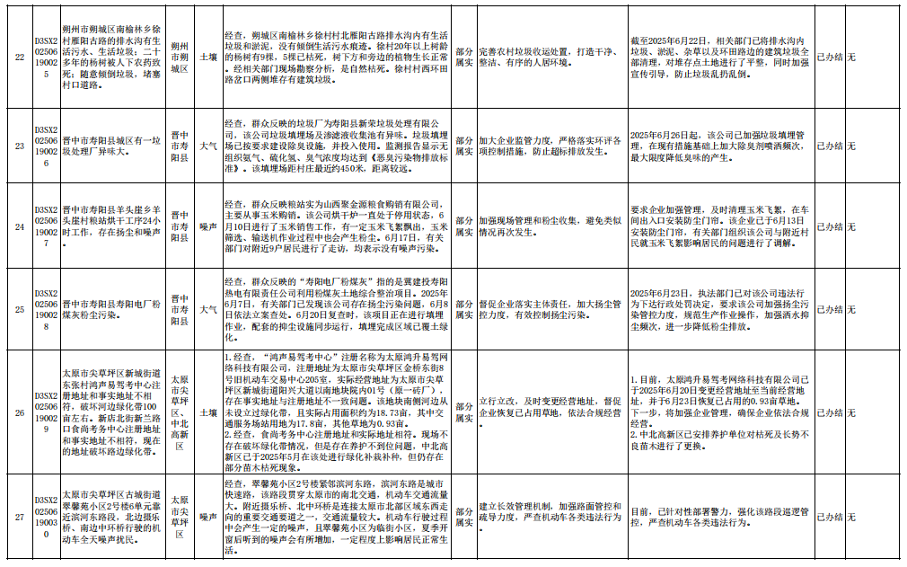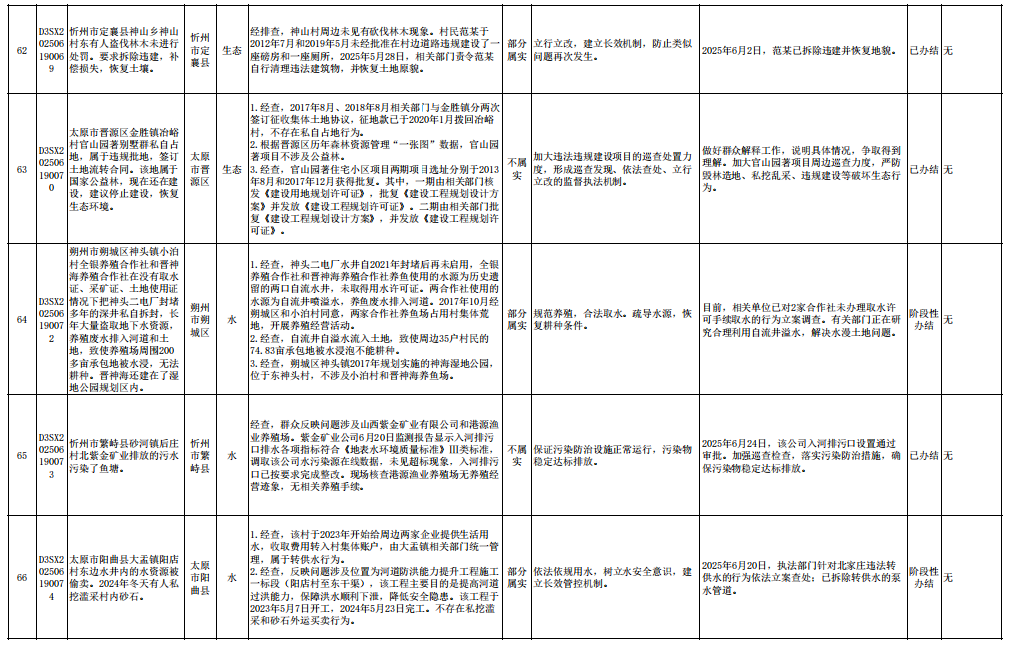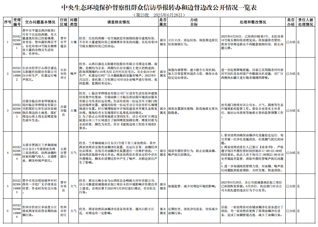 中央生态环境保护督察组群众信访举报转办和边督边改公开情况一览表(第23批 2025年6月28日)