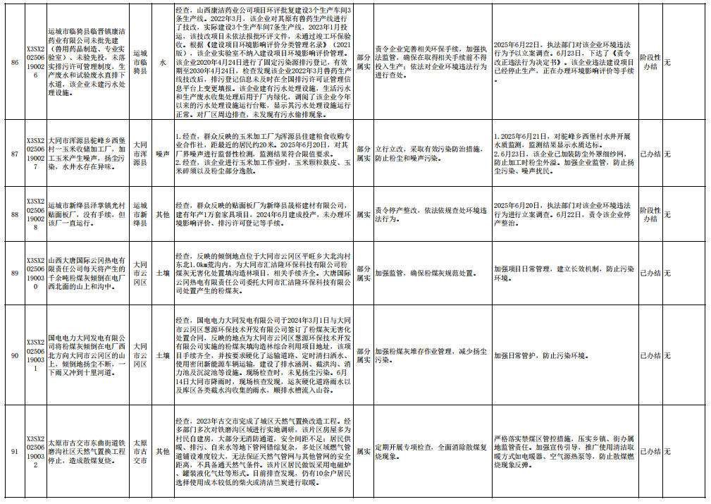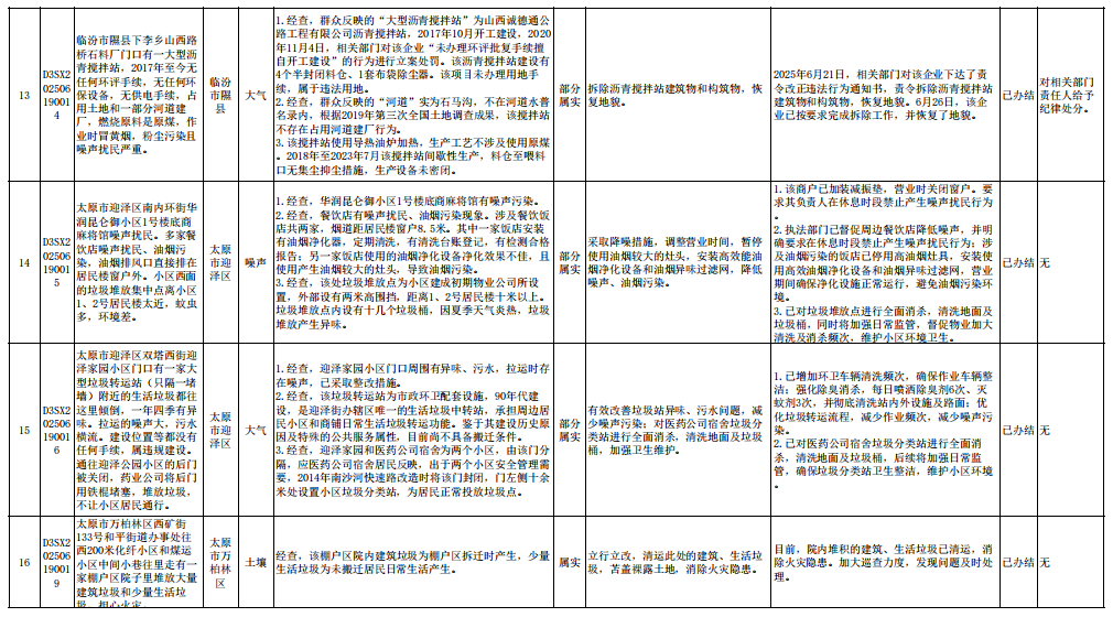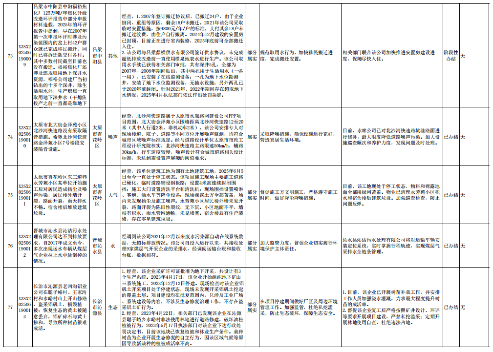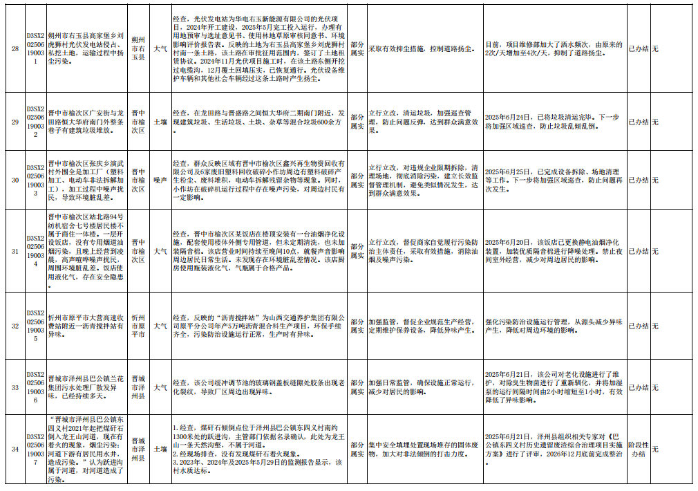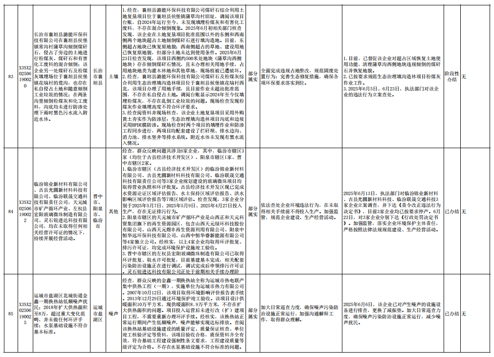 中央生态环境保护督察组群众信访举报转办和边督边改公开情况一览表(第23批 2025年6月28日)