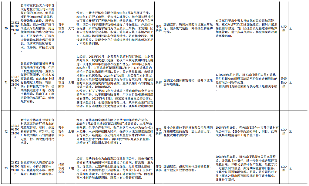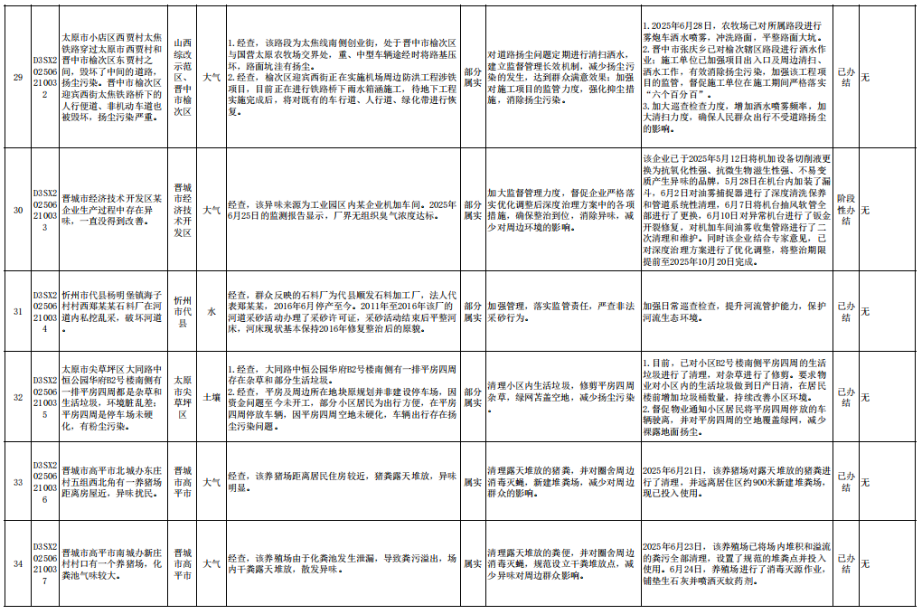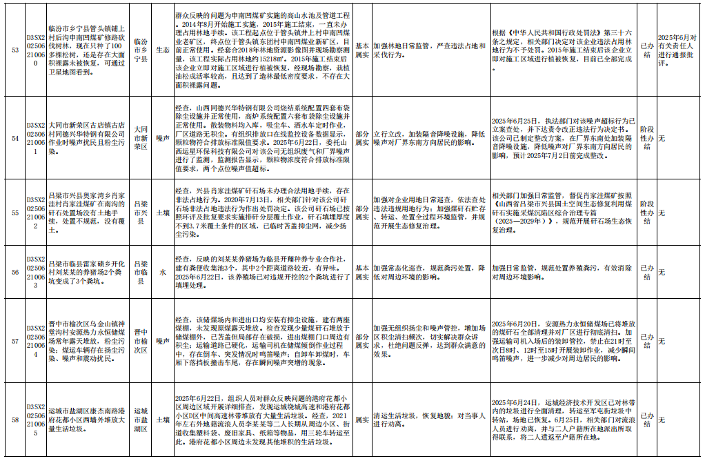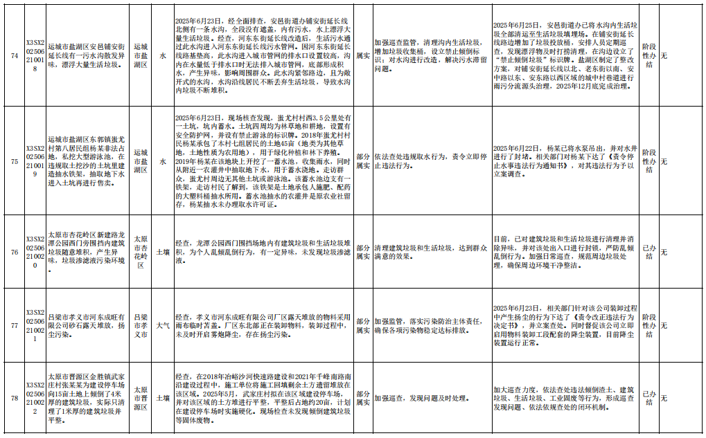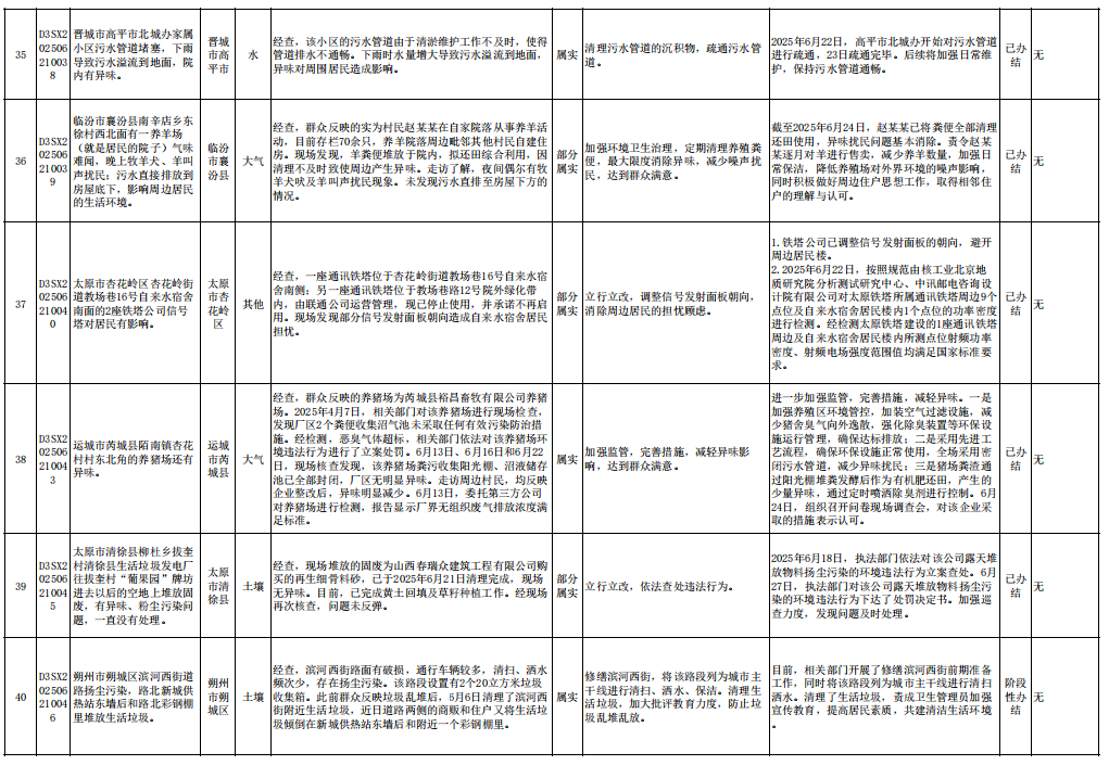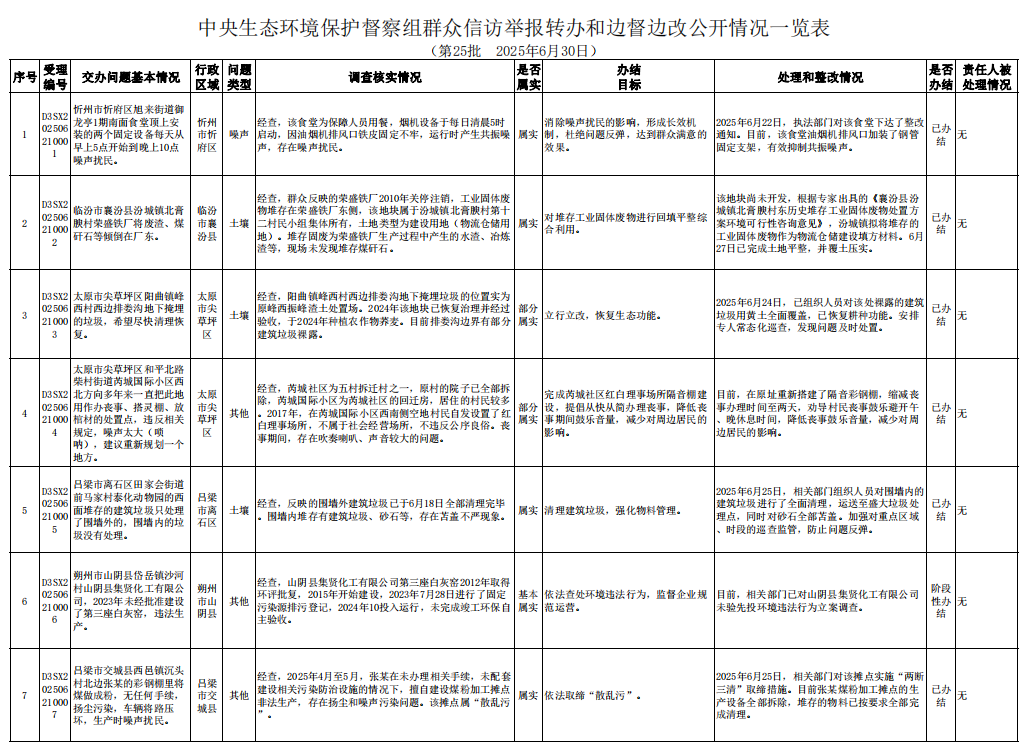 中央生态环境保护督察组群众信访举报转办和边督边改公开情况一览表(第25批 2025年6月30日)
