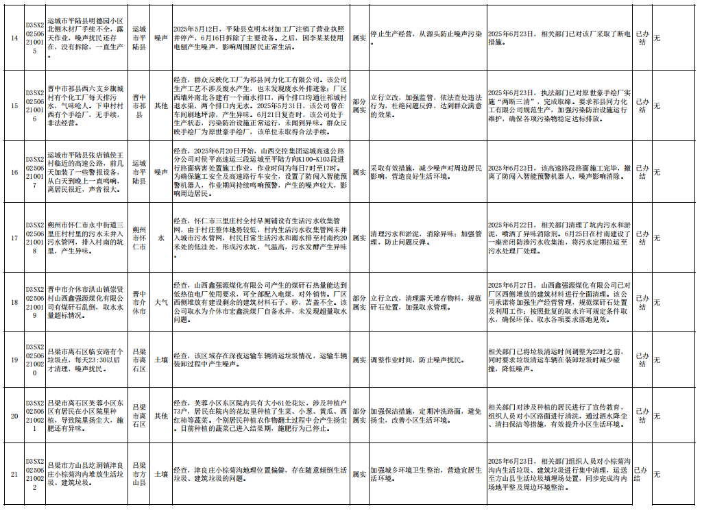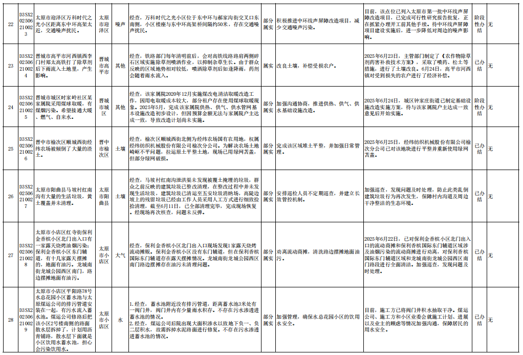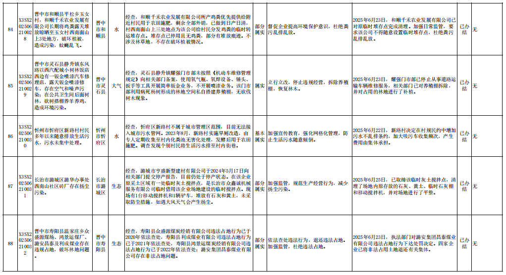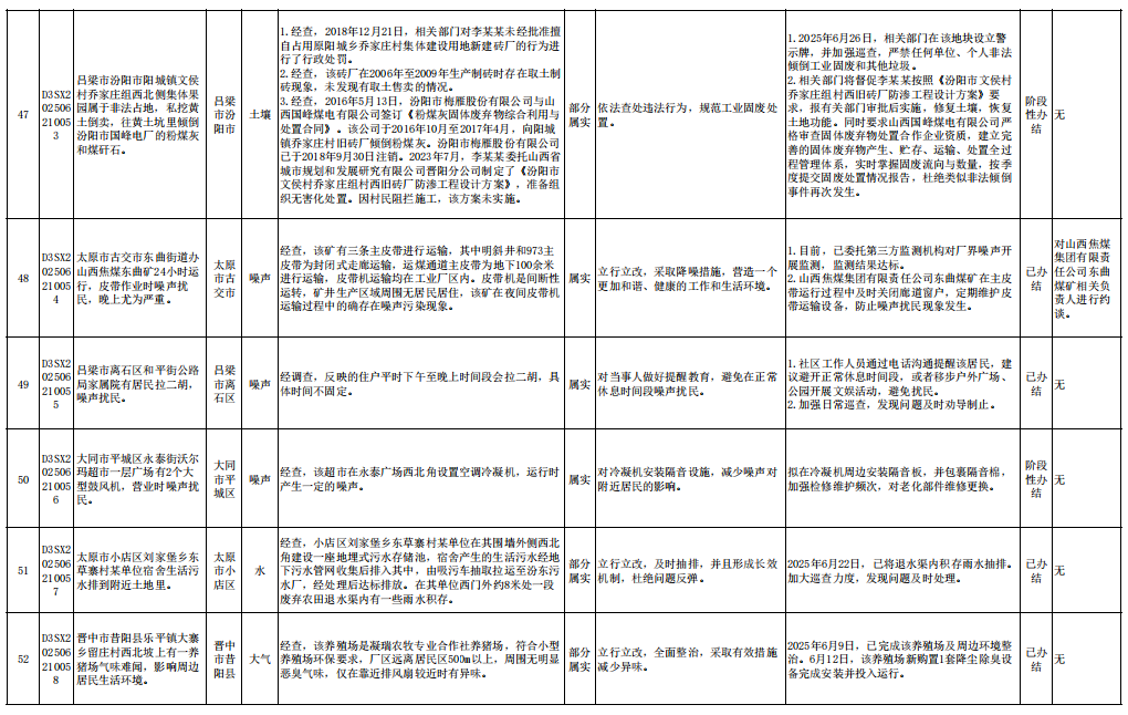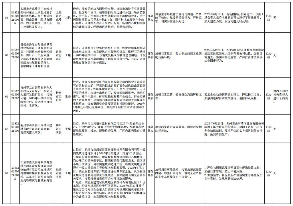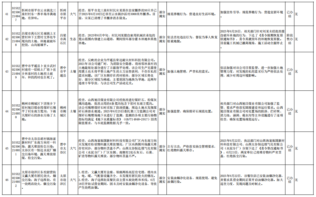 中央生态环境保护督察组群众信访举报转办和边督边改公开情况一览表(第25批 2025年6月30日)