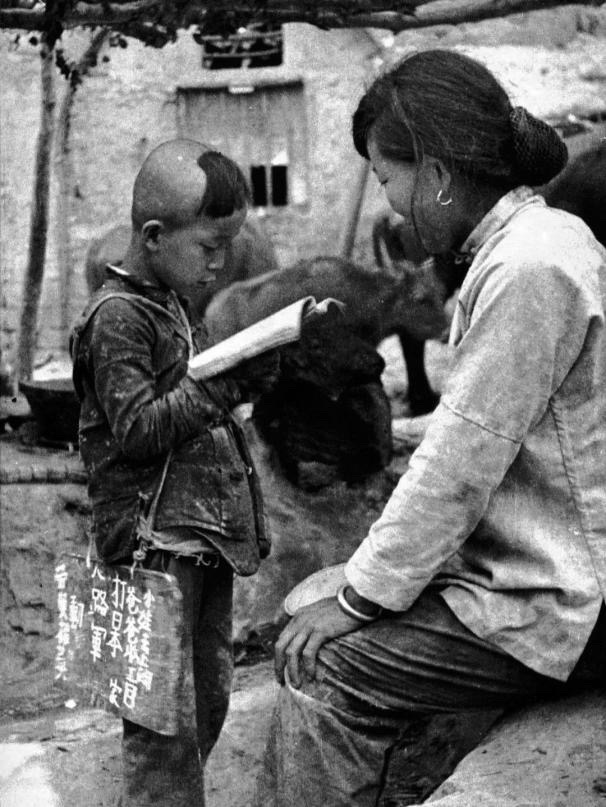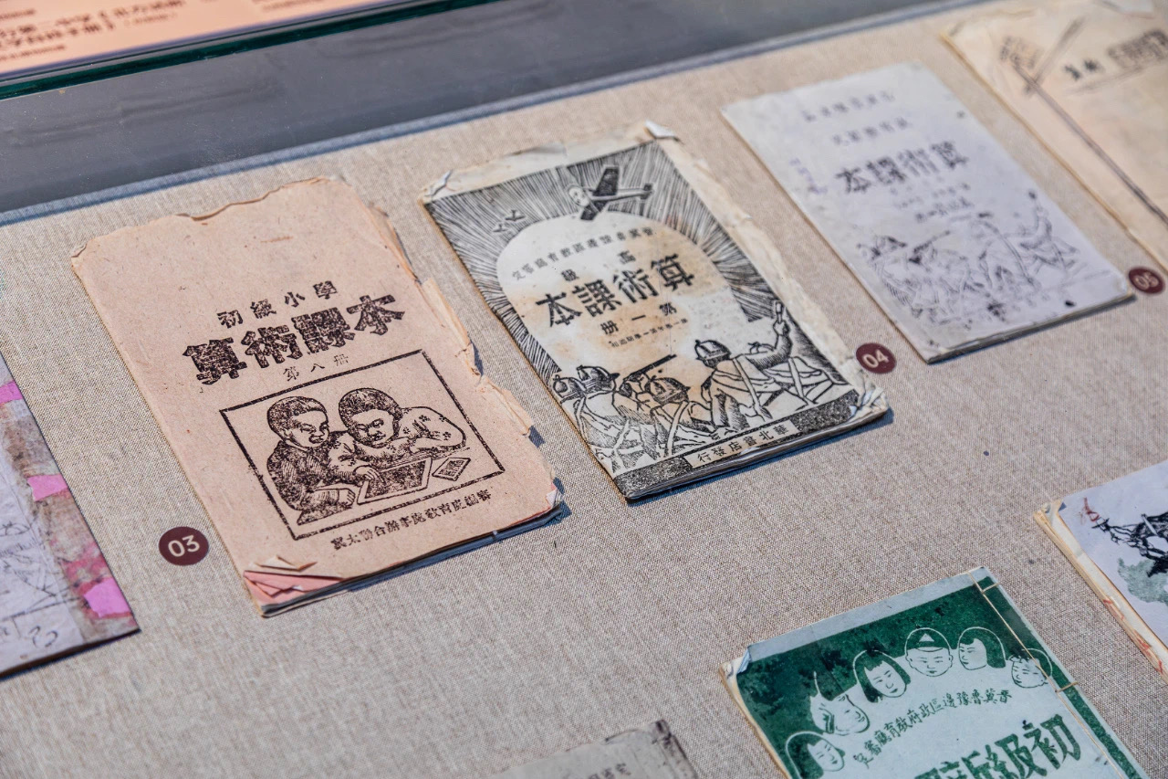 展柜里,《地理课本》《算数课本》等边区编印的教材整齐排列,见证了根据地浓厚的学习氛围。1941年开展的冬学运动,既扫盲又育人,《农民千字课》《老百姓日用杂字》等实用教材,让百姓在识字中增强民族意识。一张抗日儿童背着写有“八路军”“打日本”的小黑板的照片,更彰显出文化教育中蕴含的爱国力量。