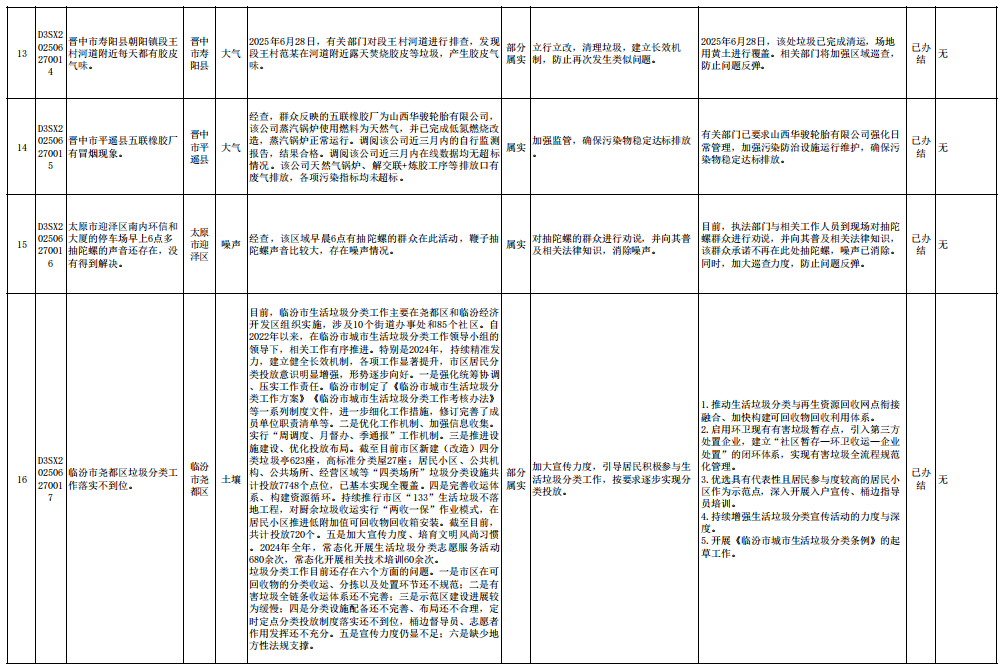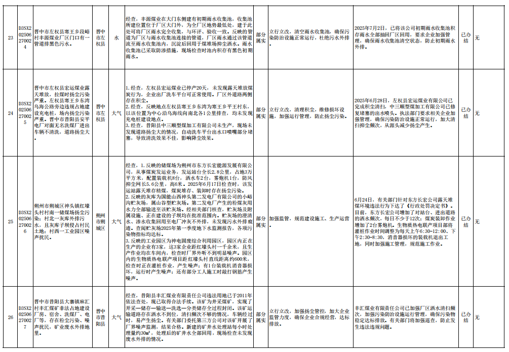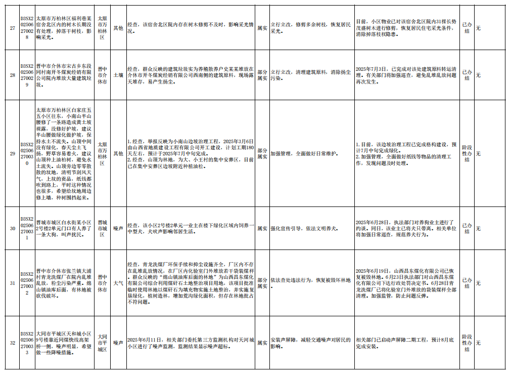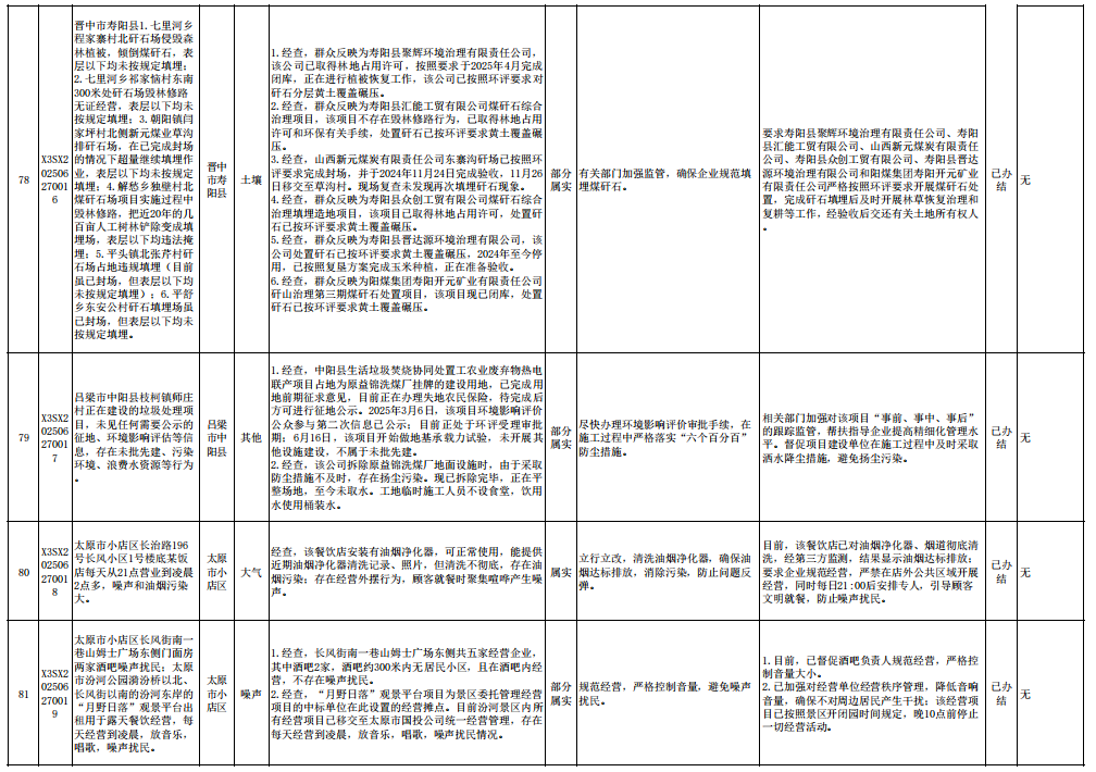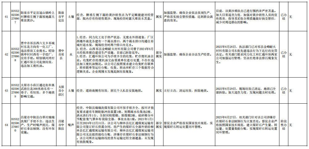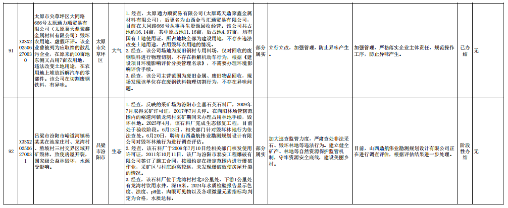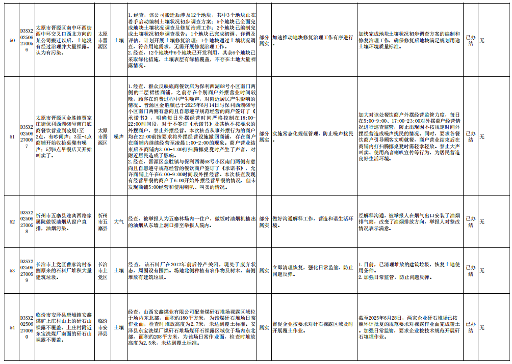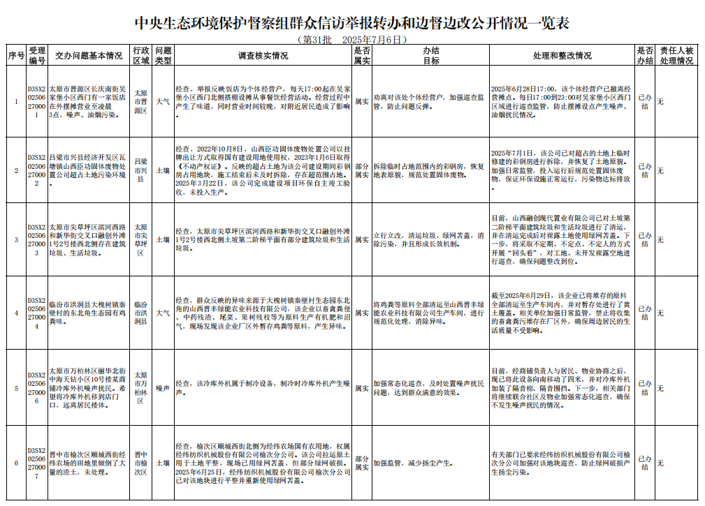 中央生态环境保护督察组群众信访举报转办和边督边改公开情况一览表(第31批 2025年7月6日)