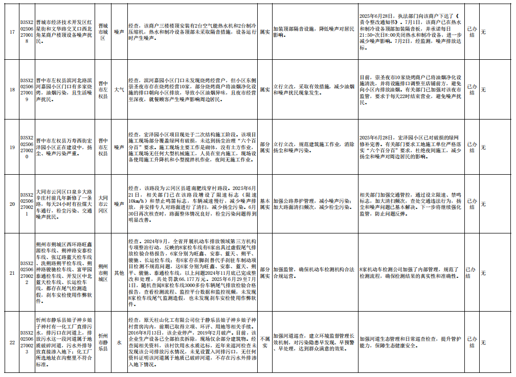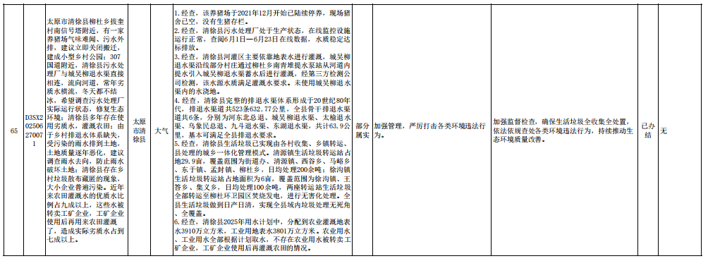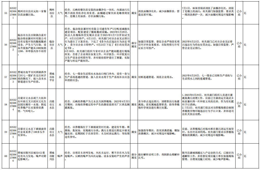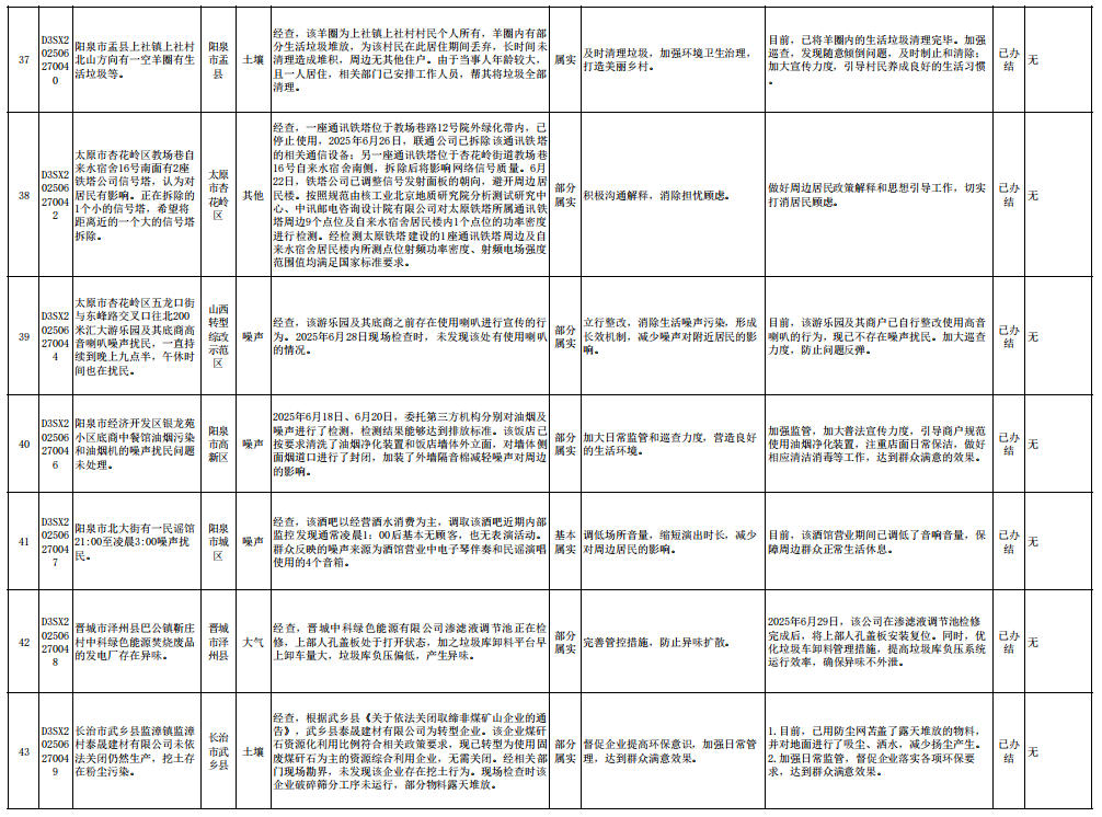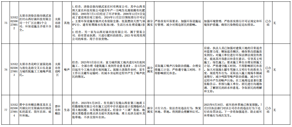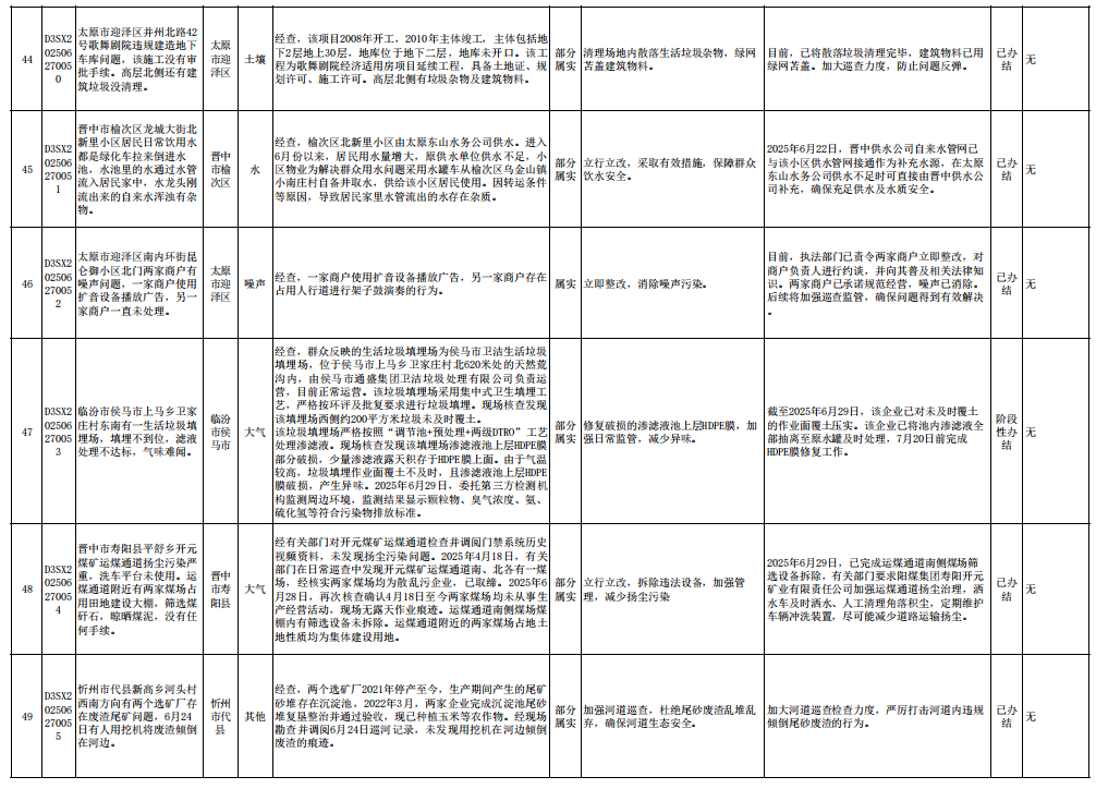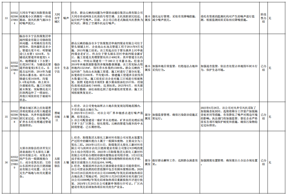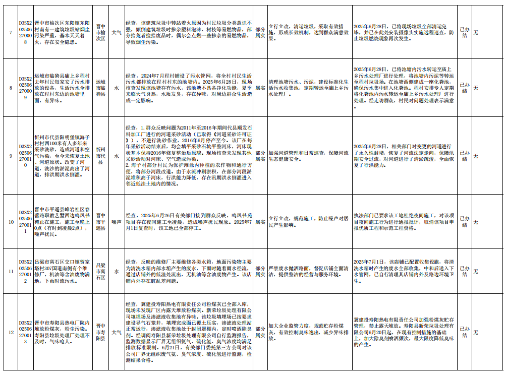 中央生态环境保护督察组群众信访举报转办和边督边改公开情况一览表(第31批 2025年7月6日)