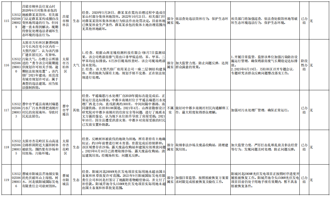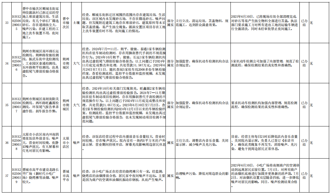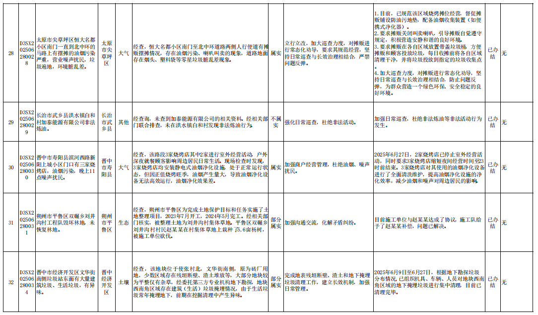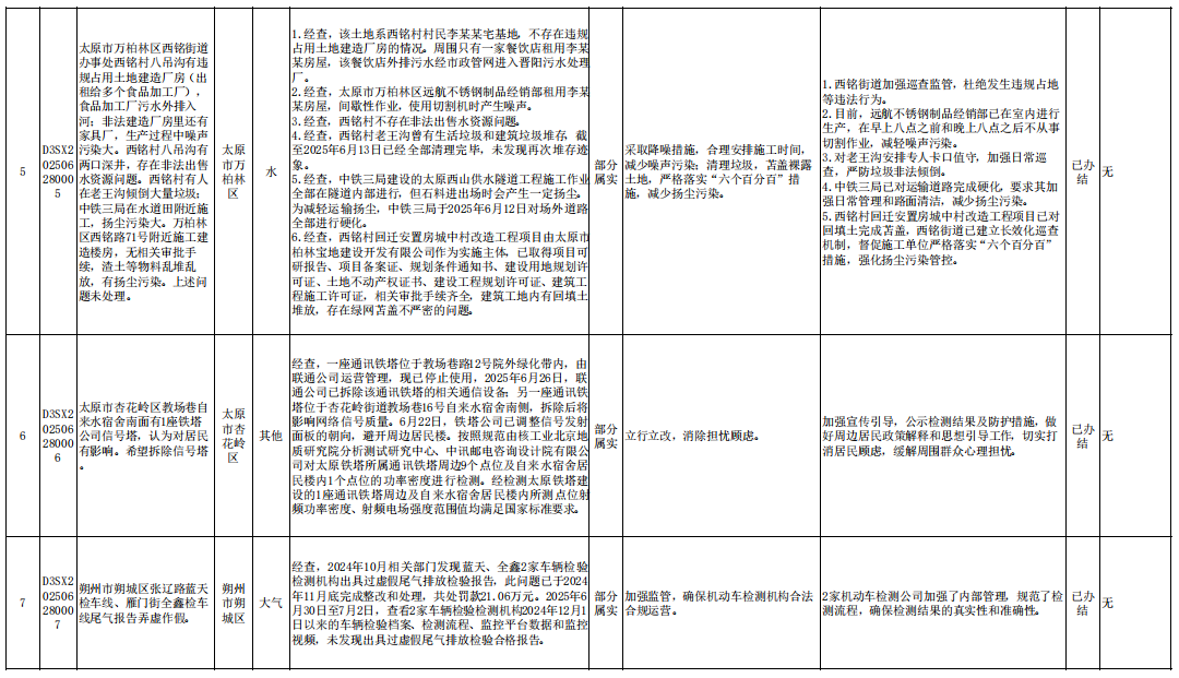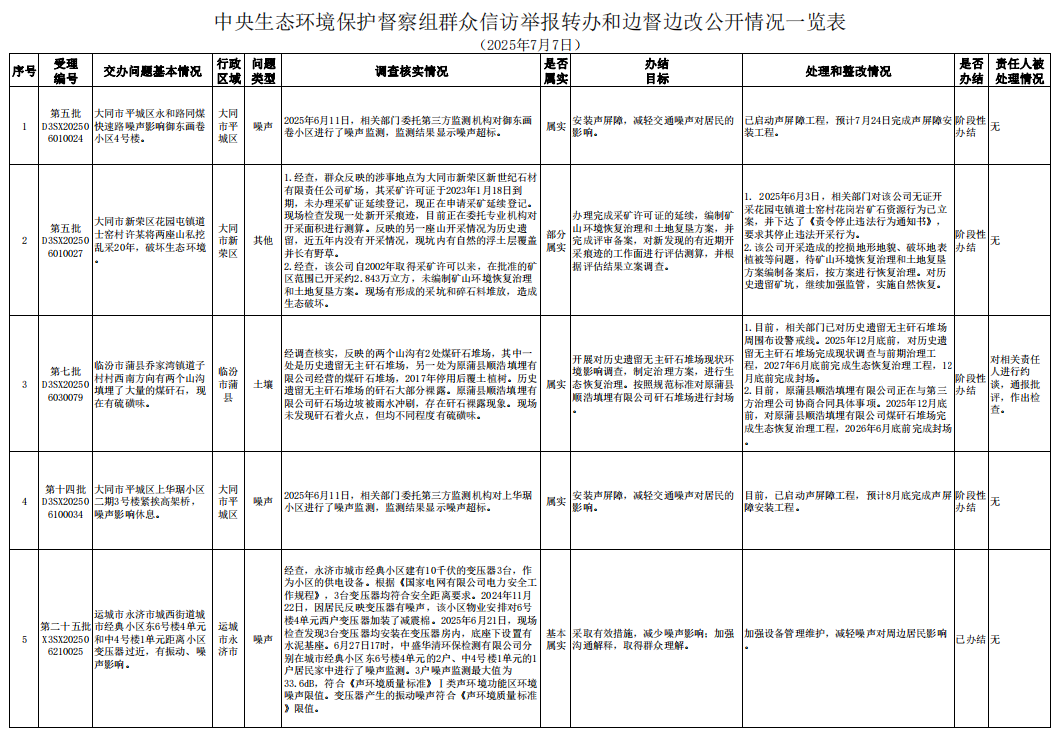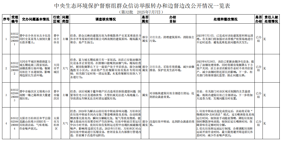 中央生态环境保护督察组群众信访举报转办和边督边改公开情况一览表(第32批 2025年7月7日)