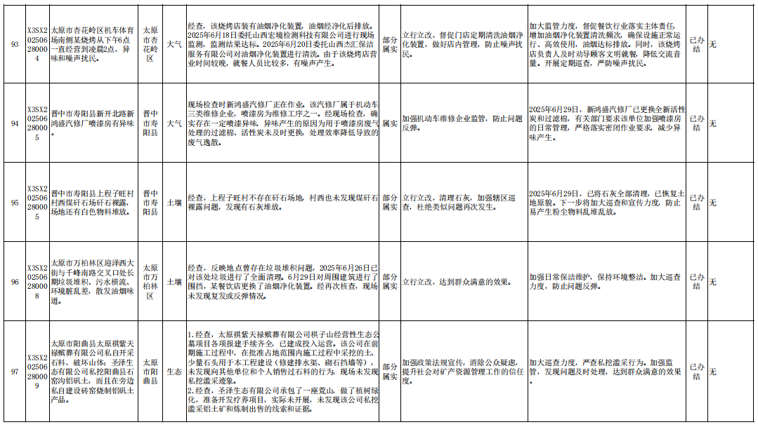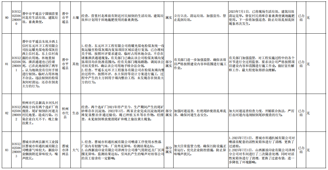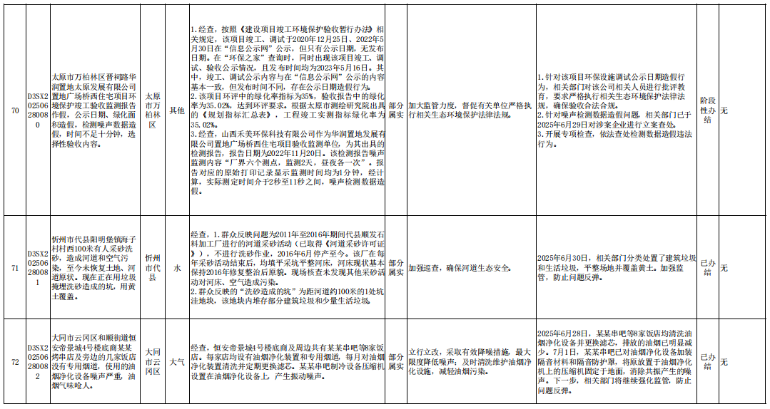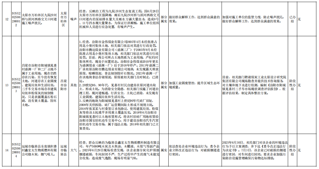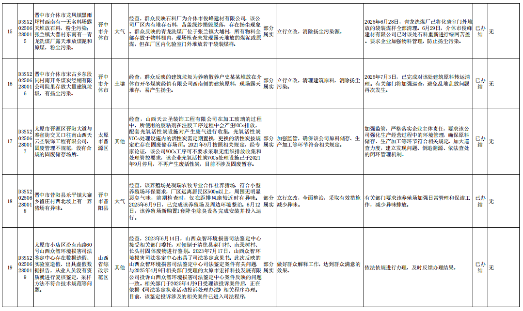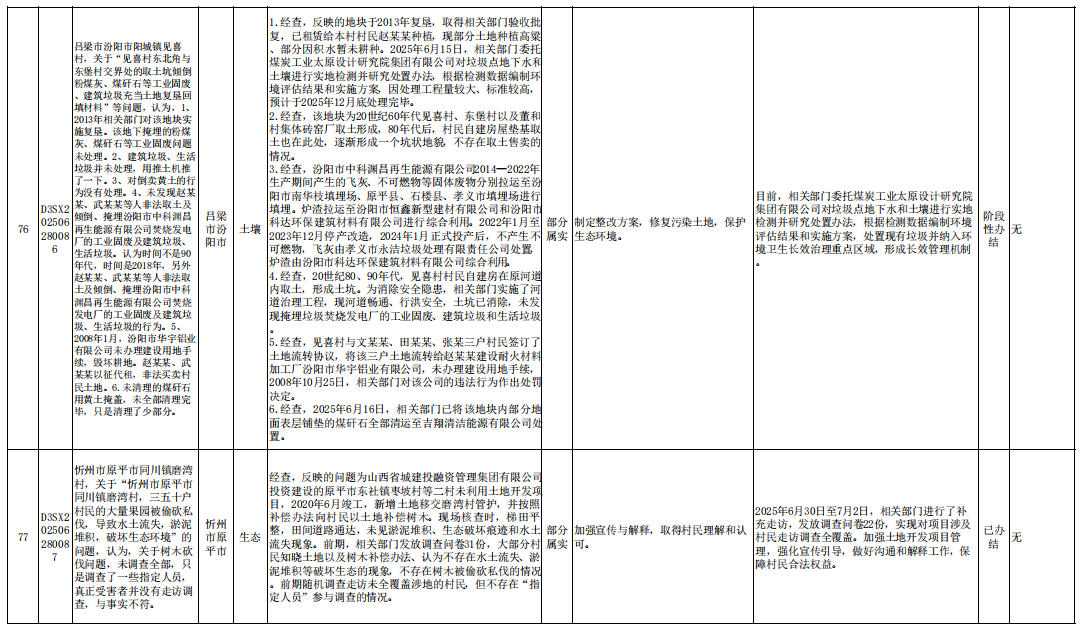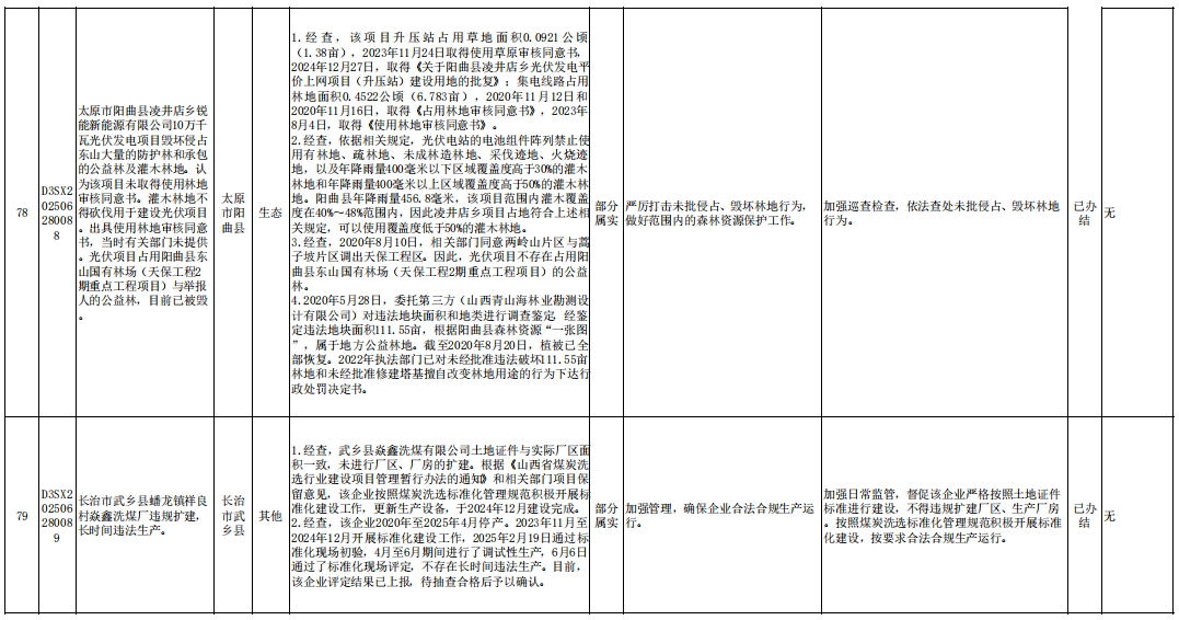中央生态环境保护督察组群众信访举报转办和边督边改公开情况一览表(第32批 2025年7月7日)