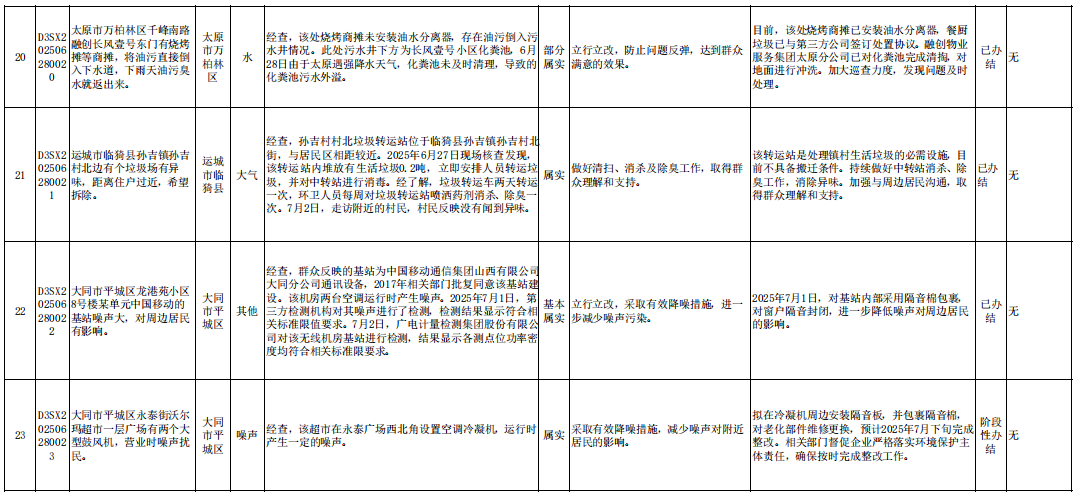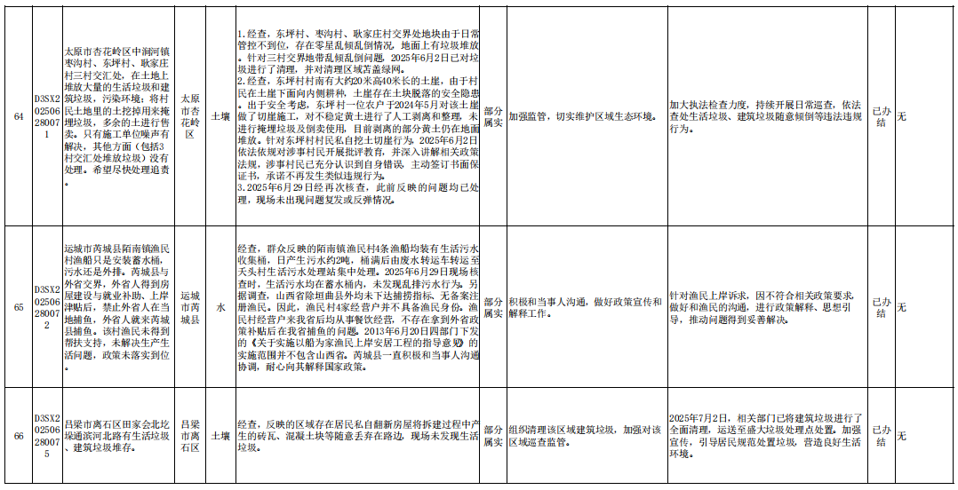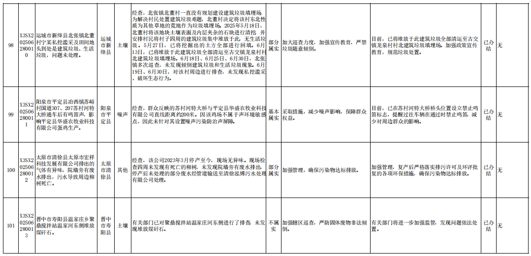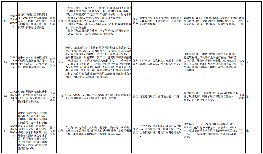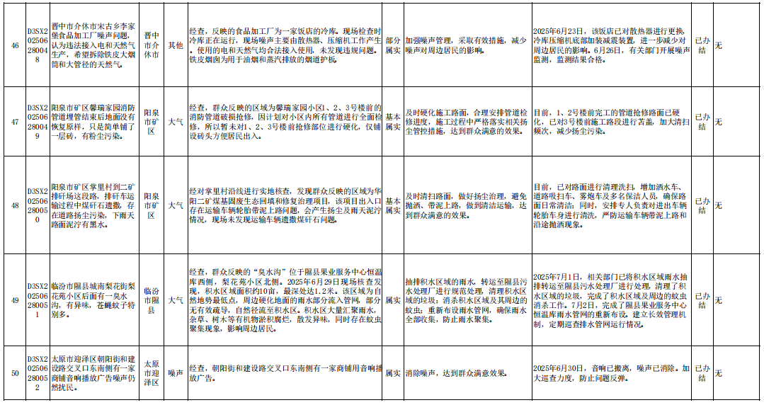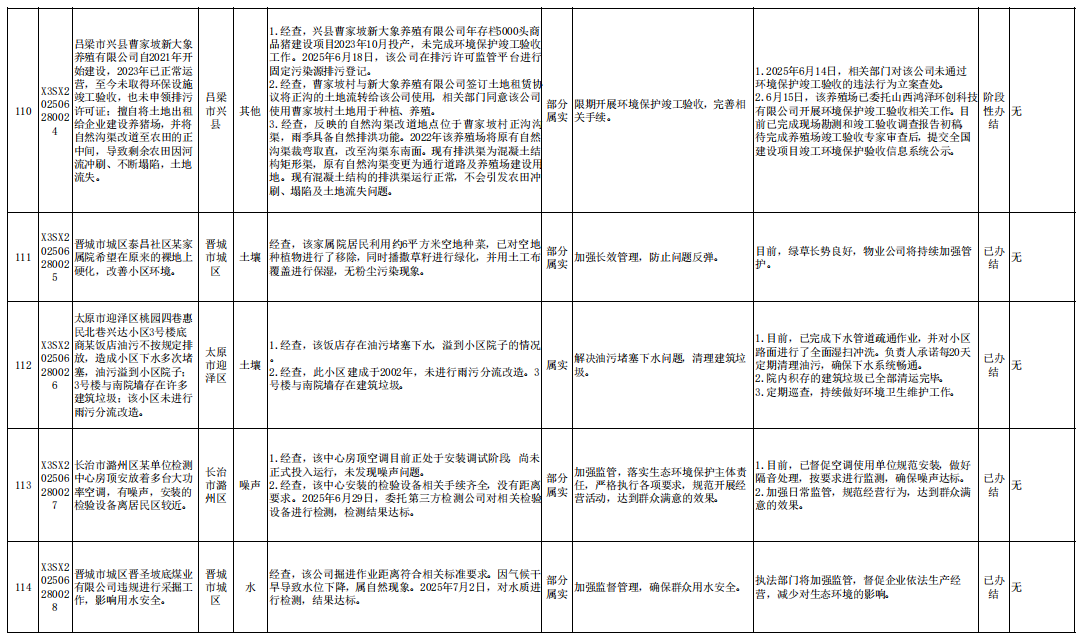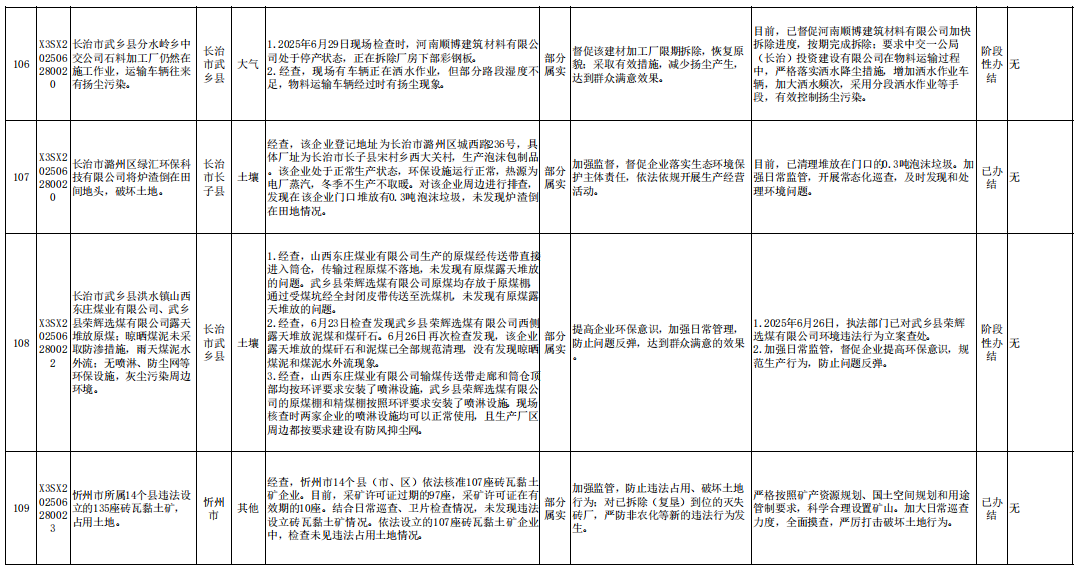 中央生态环境保护督察组群众信访举报转办和边督边改公开情况一览表(第32批 2025年7月7日)