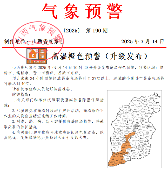 2.橙色预警!山西多地最高气温将升至37℃以上