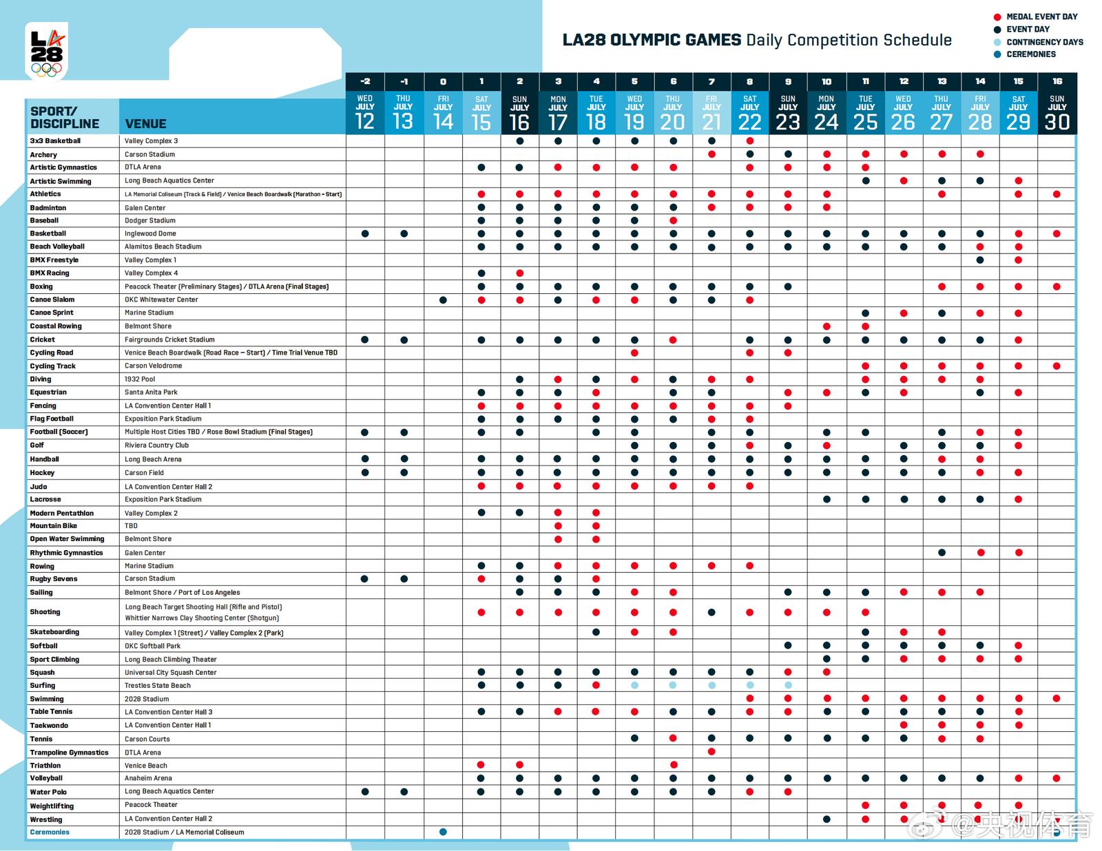 2028洛杉矶奥运会倒计时三周年之际,官方赛程正式公布。同时,洛杉矶奥运会开闭幕式时间确定。