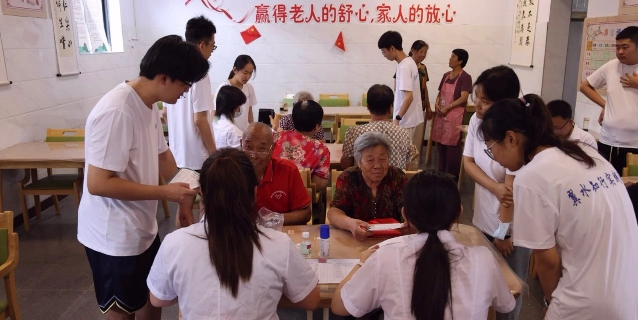 在南梁镇程公村,大学生们与县中医医院医务人员一道,为当地老年人提供体检服务,开展反诈宣传,他们还专程前往小河口水库,实地调研工程设施与运行情况。