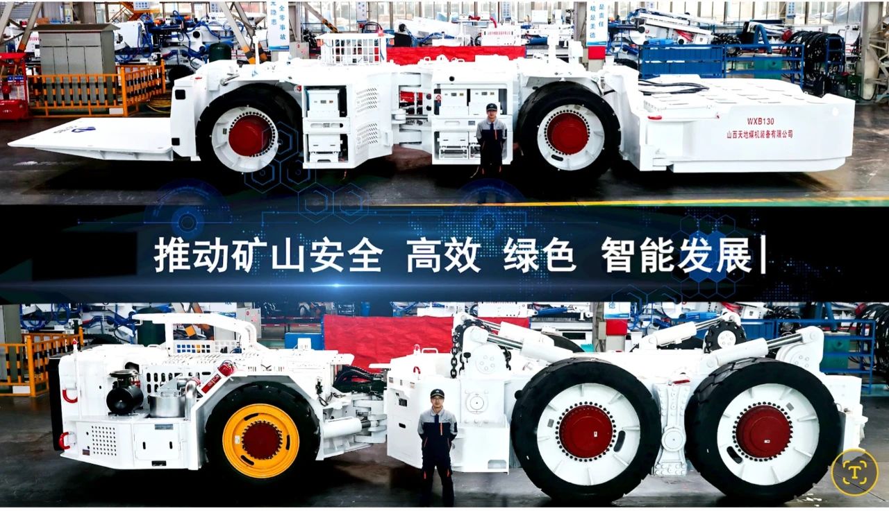 该套装备由框架式支架搬运车和铲板式支架搬运车组成。框架式支架搬运车搭载高功率清洁防爆发动机,动力强劲;6×6全轮驱动,牵引力大;具备反拖制动功能,重载下坡安全性高。铲板式搬运车搭载蓄电池动力源,井下作业零排放;采用分布式轮边驱动系统,电液复合协调制动,具有优越的驾驶操控性能。同时,该套装备搭载了全景环视、人员防接近、自动驻车等主动安防智能辅助驾驶系统,提升了大型装备在受限空间作业的安全性能。