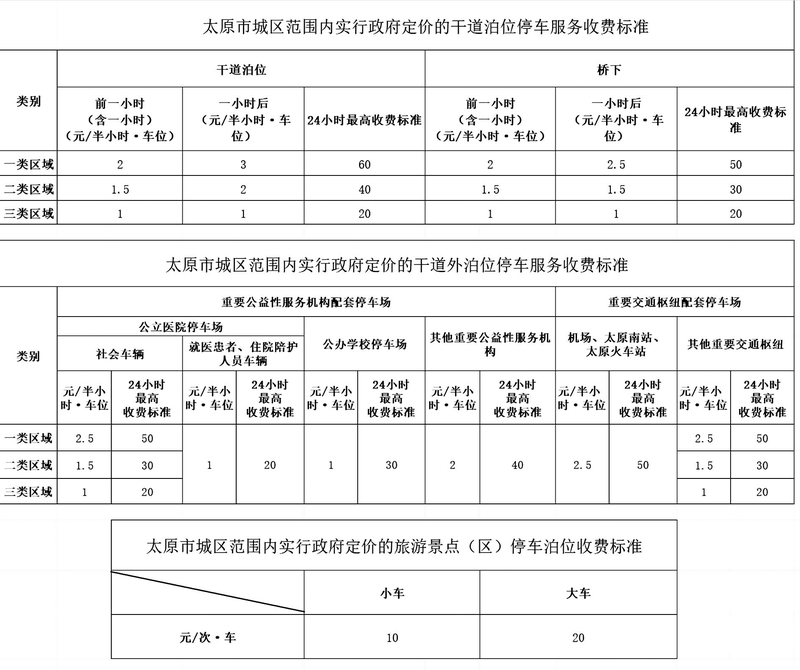据悉,太原市城区范围内机动车停车区域划分中,一类区域包括中环线以内;太榆路、龙城大街、滨河东路、南中环街所围区域;真武路、正阳街(不含)、太茅路、电子街所围区域。二类区域是太原市高速环线以内,一类区域以外的区域。三类区域是太原市城区范围内除一、二类区域以外的其他区域。除正阳街外,其他道路均包含在其内侧区域。