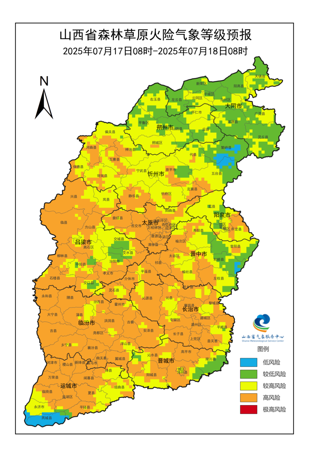 山西省气象台2025年07月17日09时56分变更高温橙色预警,预警区域:太原南部、晋中西部、临汾中部、运城。