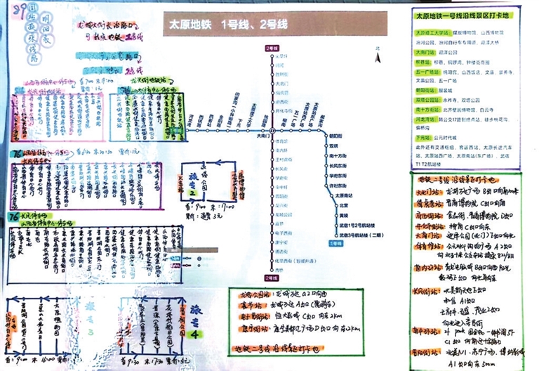 “看到老人对着手机支付界面犯难,游客拿着导航一脸迷茫,就想做点实在事。”潘蕾坦言,起初只是简单画些换乘提示,后来根据乘客建议不断完善,才有了如今系统的手绘指引。对视力不佳的乘客而言,清晰的轮廓便于辨认;对行动不便者来说,提前规划换乘路径能减少等待。无声的手绘图,成为特需乘客的“出行拐杖”。