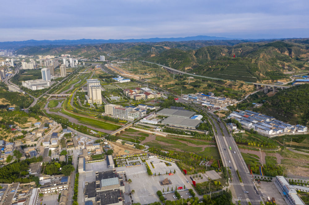 这是7月1日拍摄的山西省吕梁市兴县县城一景(无人机照片)。