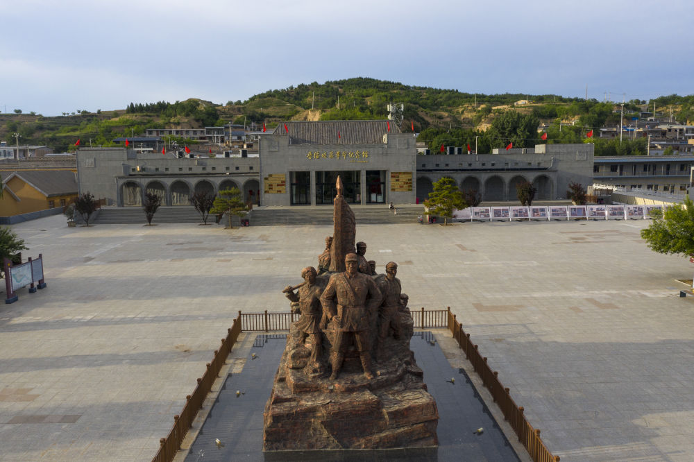 这是7月1日拍摄的位于山西省吕梁市兴县蔡家崖村的晋绥边区革命纪念馆(无人机照片)。