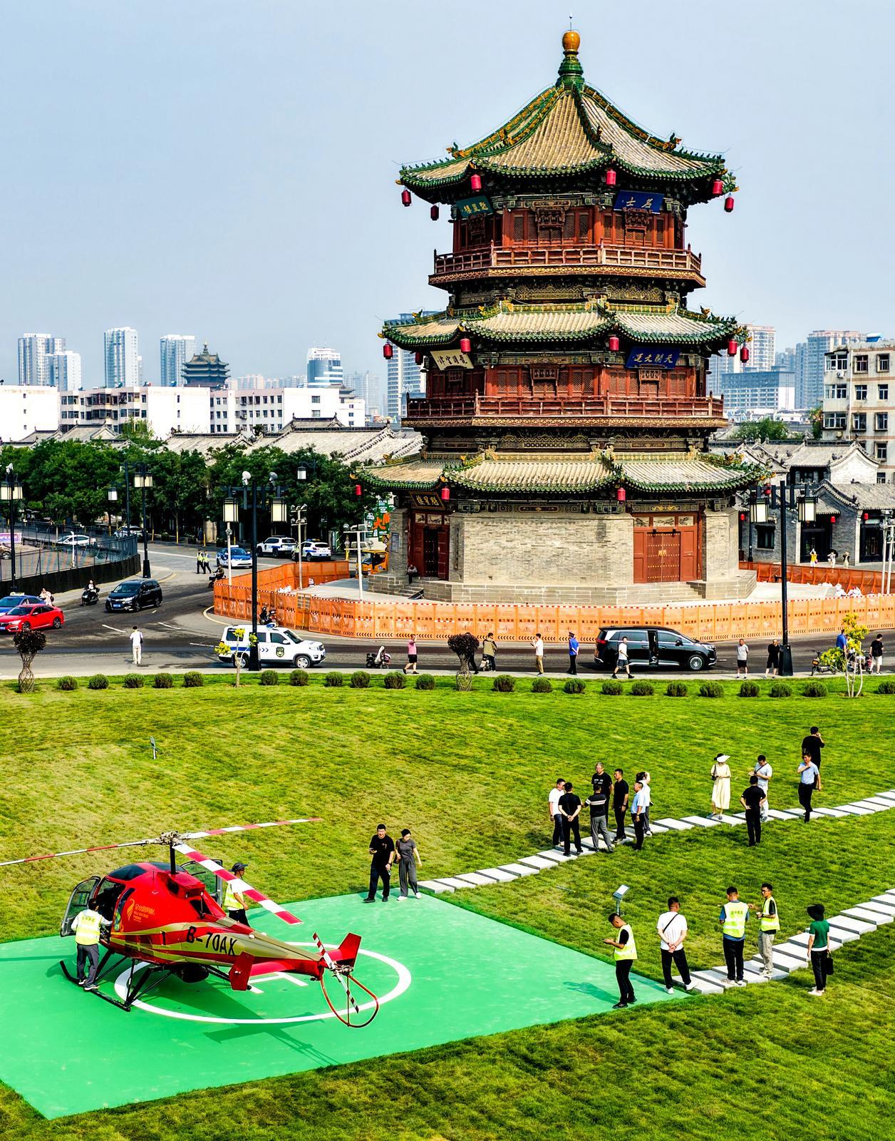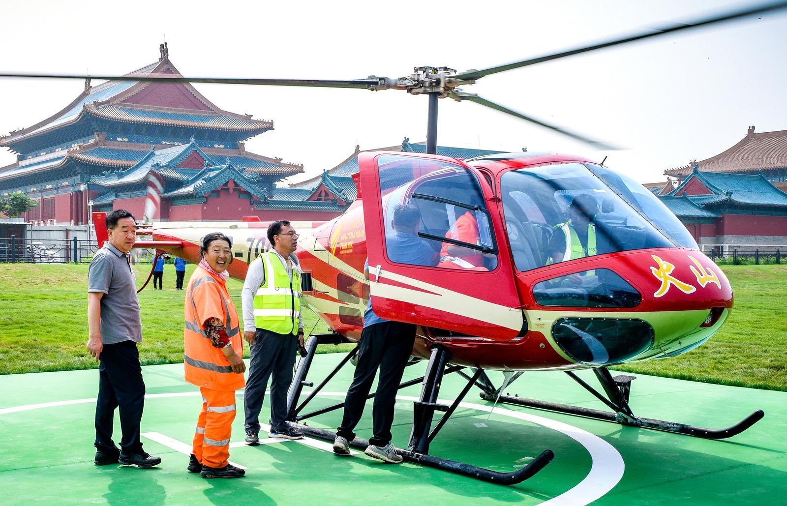 7月12日,大同市古城低空旅游项目全新启动,为四海宾朋开启大同新“视”界。在试飞体验中,古城环卫工人、在同工作的外籍教师等欣然登机,空中环游古城,体验大同之美。此项目以代王府西侧草坪为中心起降,开展半径8公里的低空旅游俯瞰活动。