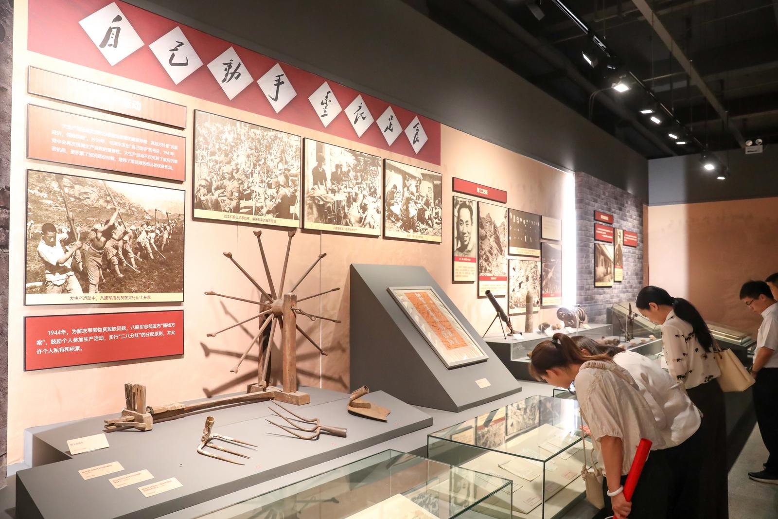 1000余件珍贵文物中,既有八路军使用过的三八式步枪、边区政府发行的货币,也有群众为前线将士缝制的“拥军鞋”、刻有“誓死保卫祖国”字样的土制手雷……一件件斑驳的文物、一幅幅泛黄的历史照片,生动诠释着“人民战争”的深刻内涵。年轻党员们一一驻足细观,纷纷表示:“这些文物不仅是历史的见证,更是新时代媒体人、文博人讲好中国故事、传承红色基因的珍贵素材。”