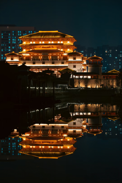 当华灯初上,这座城市的古韵与新辉悄然交融。巍峨楼宇被璀璨灯火点亮,倒映在静谧水面,千年的过往似被揉进这一晚的光影,无声诉说着南阳的今时与曾经。那光影里,有历史的厚重,亦有时代的蓬勃,每一缕光都在勾勒城市的轮廓,每一片影都在晕染岁月的温柔。