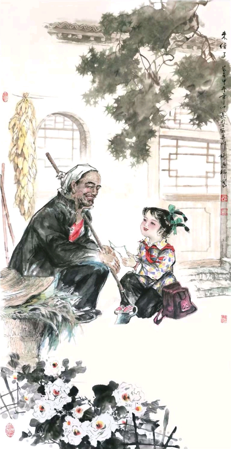 国画《来信了》