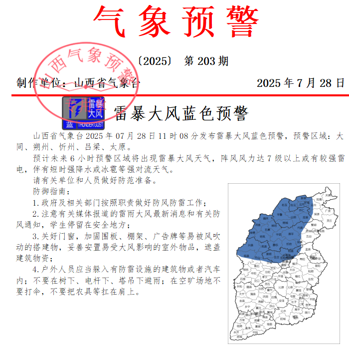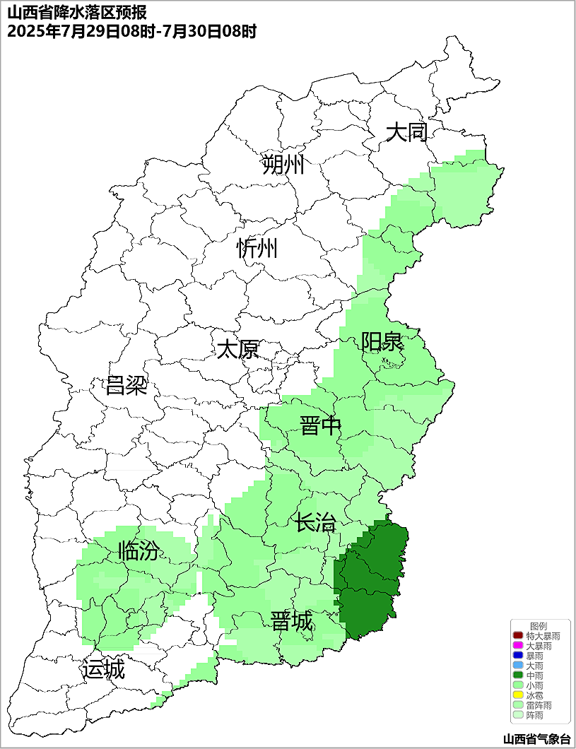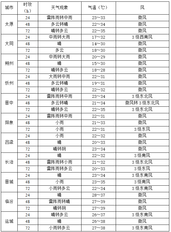 全省晴天转多云,大同、忻州、阳泉、晋中、长治、晋城、运城等地的部分地区有阵雨或雷阵雨。局地伴有短时强降水、雷暴大风等强对流天气;