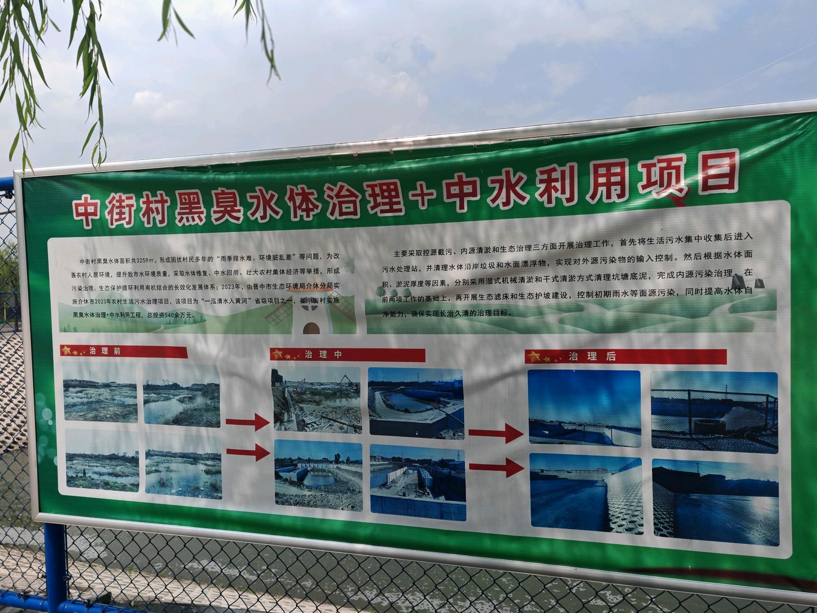 中街村南面就是汾河,距离仅一公里,这里的生活污水处理情况直接影响到汾河水质。近年来,介休市科学规划、综合治理,特别是在“一泓清水入黄河”生态保护工程的推动下,开展了农村生活污水治理项目、义安镇万户堡片区农村生活污水治理一期工程、义安镇区域生活污水治理项目,在辖区内进行污水管网铺设、提升泵站建设、污水站扩容、路面破除及恢复,道路边沟,坑塘硬化等工程;实施介休市农村黑臭水体治理项目,对6个行政村19处黑臭水体开展截污控源、生态修复等措施,全面消除国家监管和省级监管名单中的农村黑臭水体,进一步提高农村生活污水收集和黑臭水体集中整治,补齐农村生活污水治理短板。