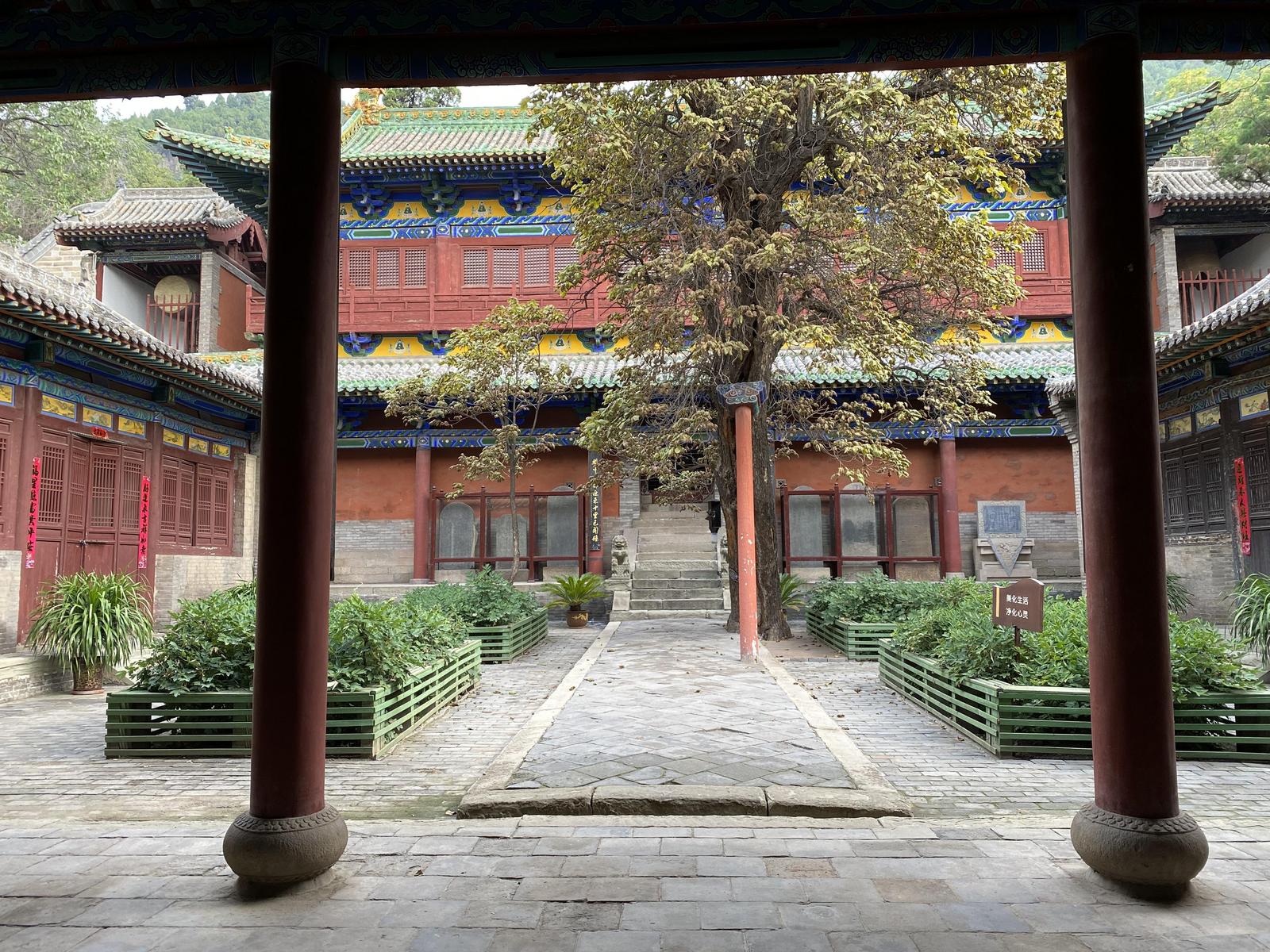 天宁寺内的千佛阁跨越于砖砌窑洞之上,与山门之间的院落保存着大量碑刻,其中一块晚明铁碑颇为稀罕。寺内的大雄宝殿前,古柏或屹立,或斜出,姿态各异但苍劲如一,古寺之幽且肃,令人肃然起敬。