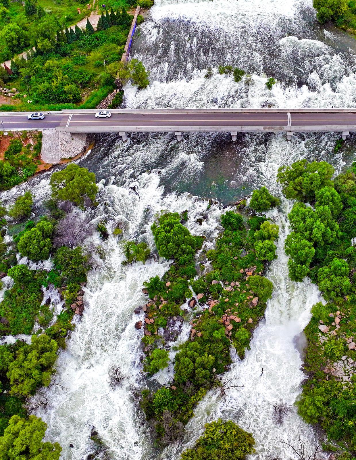 连日来,由于上游来水量增加,使得大同市云州区册田水库开闸放水。清澈水流奔腾而下,在长城一号旅游公路的册田水库一号桥处形成壮观瀑布,与周边自然风光相互映衬,成为一处新奇的观景地。