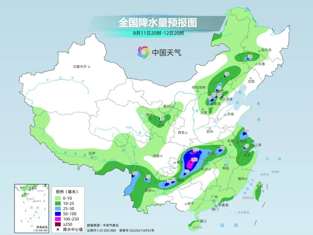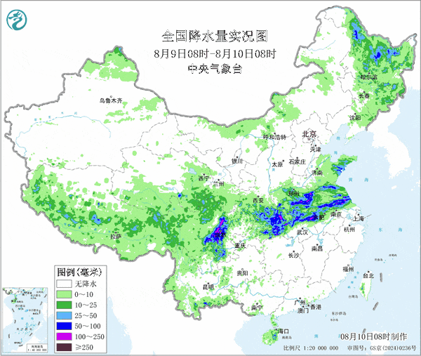 8月9日起,随着副热带高压逐渐南落,雨带也向南转移,四川东部、重庆、湖北、安徽、江苏等地部分地区成为降雨的核心区域。