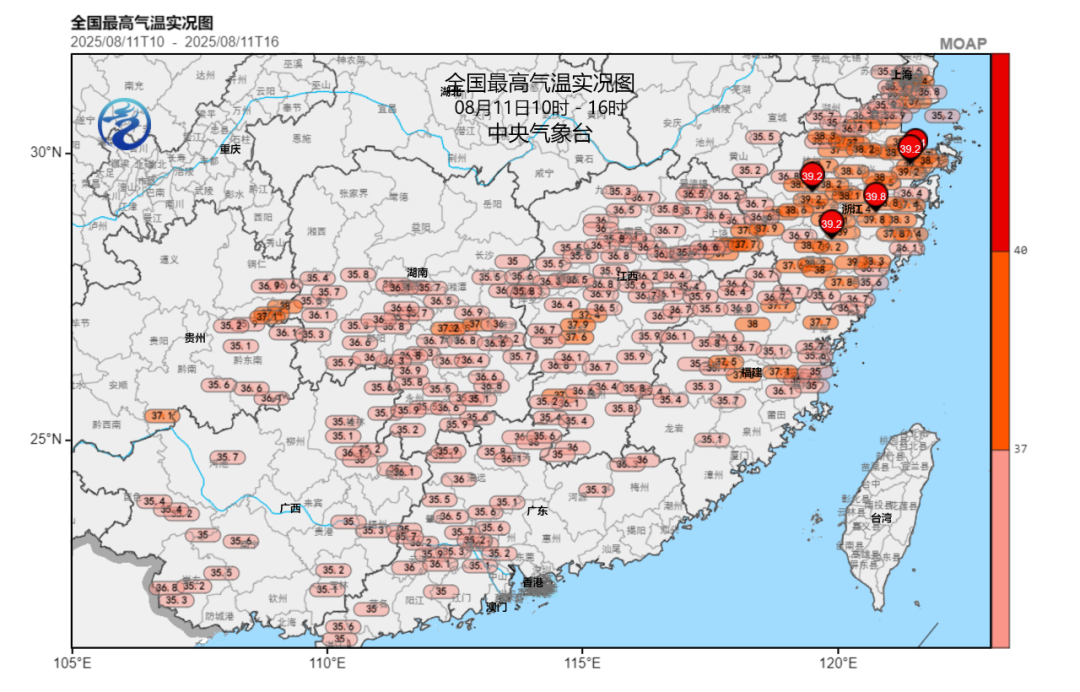 而被副热带高压控制的湖南中南部、江西、浙江、福建等地,则成为高温的“主阵地”。