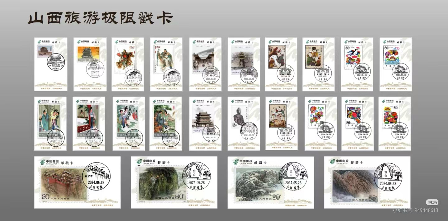 为了满足集邮爱好者的收藏需求与旅游爱好者的打卡需求,山西邮政特别推出76枚“极限戳卡”,将同题材的邮票和风景日戳集于一身,是彰显三晋文化特色的纪念收藏珍品。