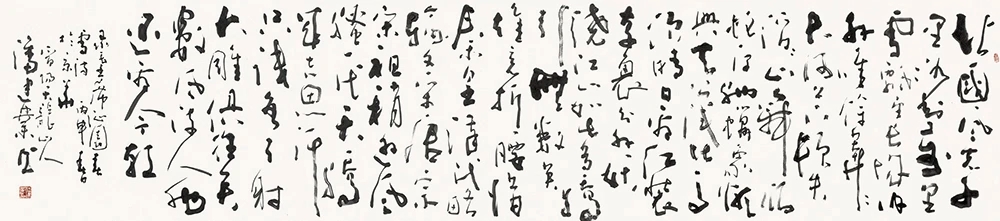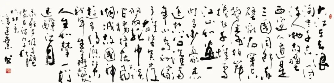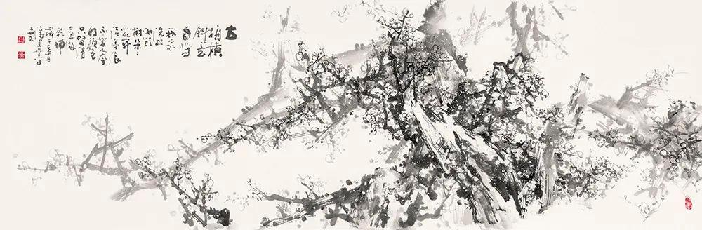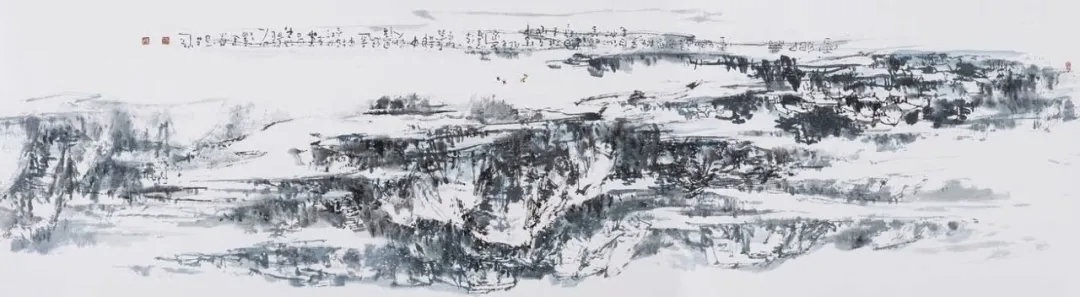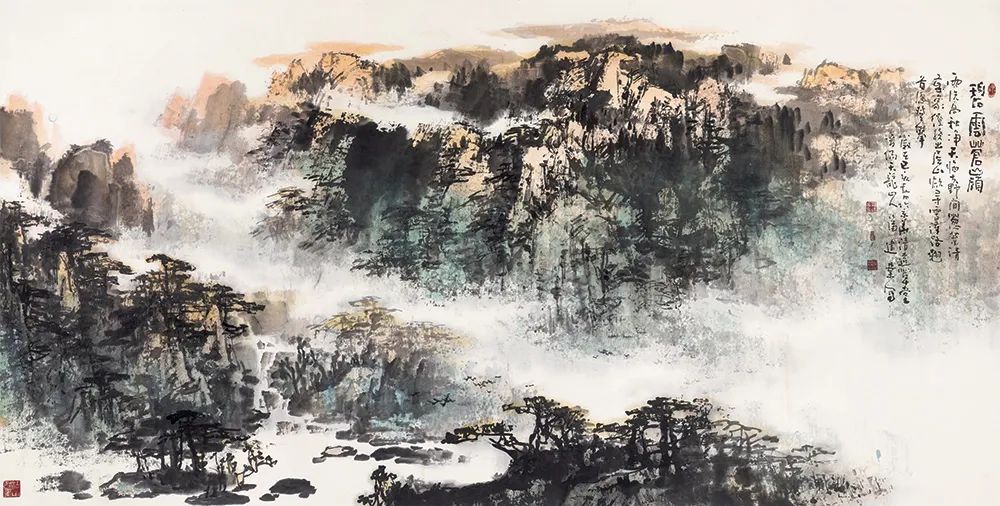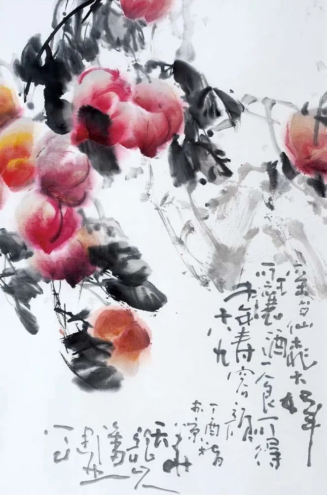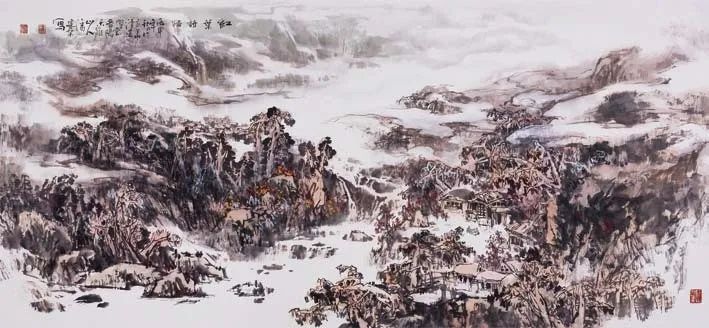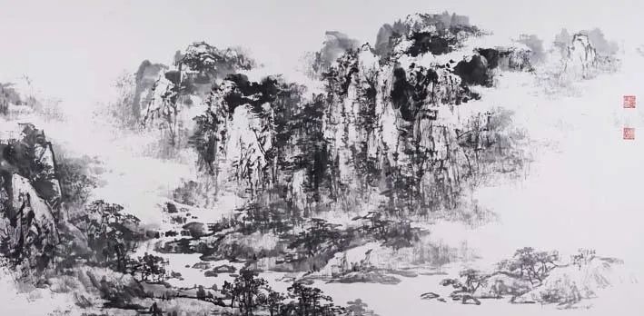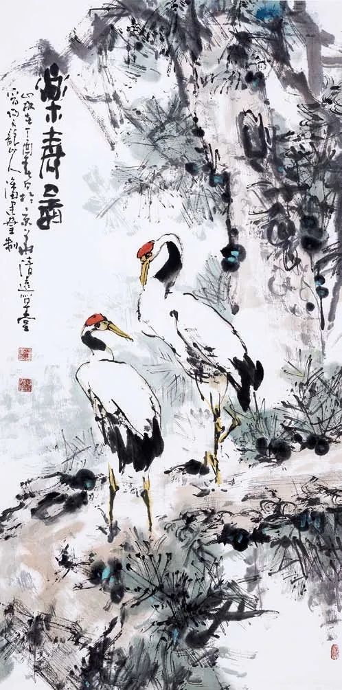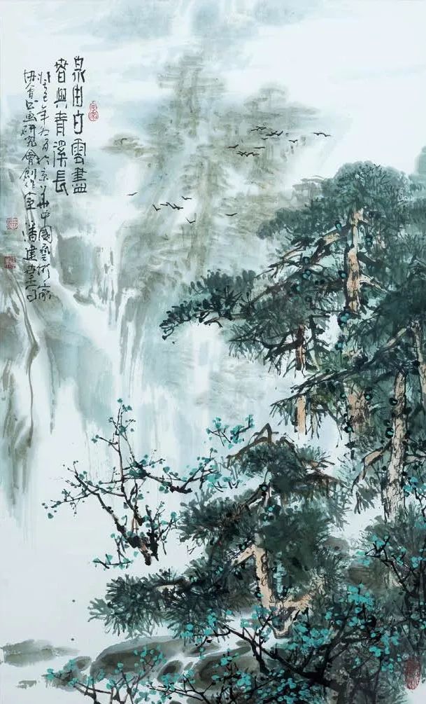 从事美术创作50余年,潘建业说创作的过程也是一个快乐的过程,不管遇到什么坎坷,他始终以快乐洒脱的心情去发掘美、创造美。数十年来,他凭借着发疯般的热情,痴痴地热爱着这项事业,潘建业笑称自己像个苦行僧,夜以继日,废寝忘食,从未感到疲倦。他执着地在艺术的道路上跋涉、求索,不断地在祖国丰厚的文化遗产中汲取营养,在传统的基础上进行创造。潘先生认为,对古人的传统,首先要采取分析的态度,应该区分其精华与腐朽,吸收其精华部分,储存在自己心中,作为自己创造的养料。其次,学习前人应学其精神实质。他认为,学前人,不能只求形式,应不受束缚,努力求变。潘先生非常赞赏吴昌硕的观点:“古人为宾我为主。”就是古人为我所用,借古开今,自己进行创造。笔墨当随时代,与时俱进的同时,还要师法造化,向大自然学习,做到“五岳储心胸,峥嵘出笔底”。在师古人师造化出己意的同时,潘建业不断地求新求变,他认为内容决定形式,不同的内容要用不同的形式,不应该一辈子用一种方法,不能一味地复制过去。他不停地审视过去走过的路,不断地批判自己,真诚地和同行切磋,始终以饱满的热情不断地对自己否定再否定,画风画貌力求做到两年一小变,四年一大变。因而,潘建业的画作既扎根于中国国画艺术的传统与严谨之中,又赋予时代的气息与使命,呈现出一派郁勃旺盛的生命张力,墨色交融,风格高雅。