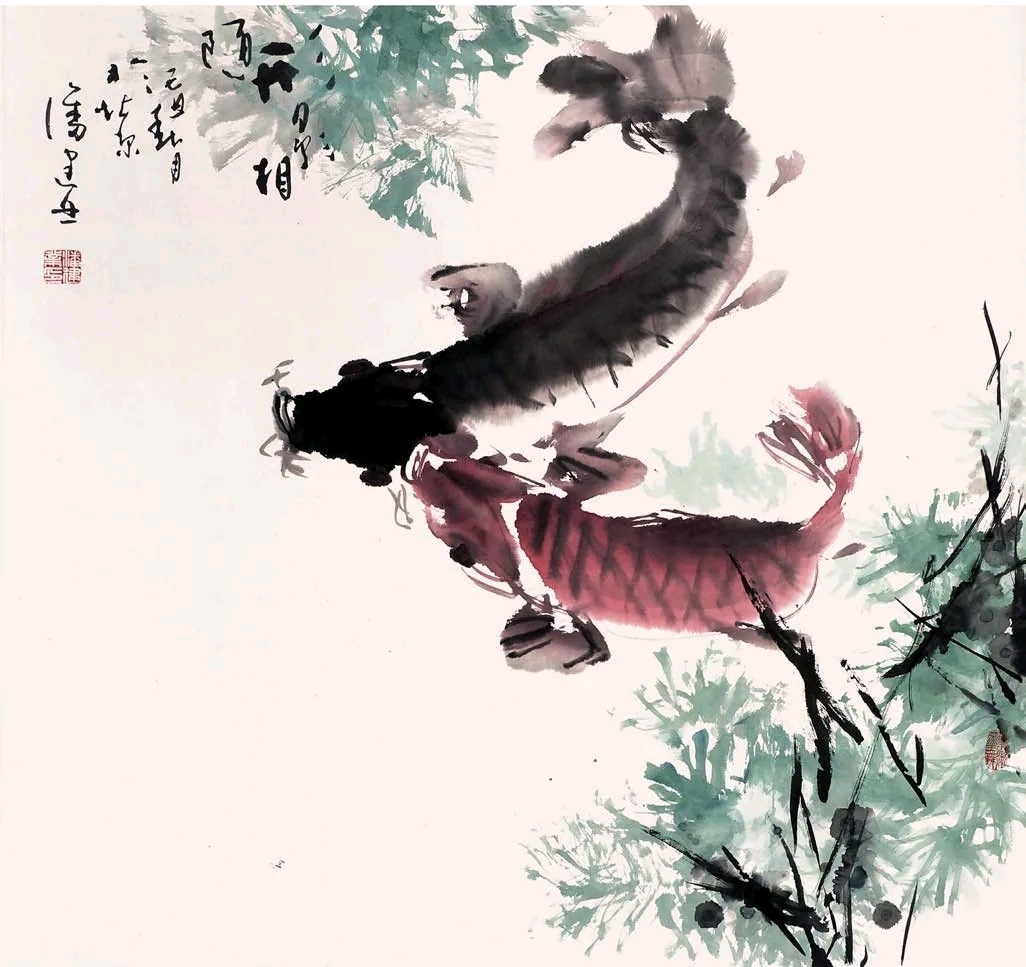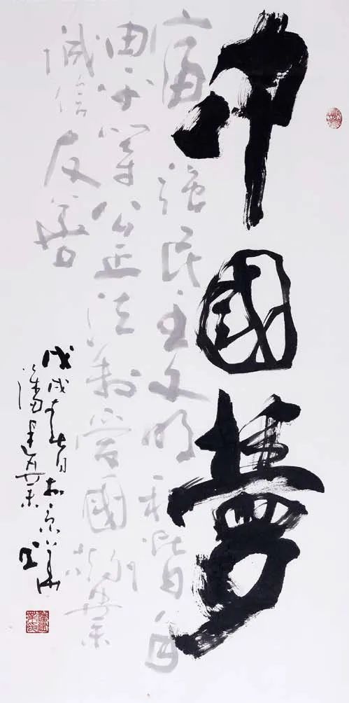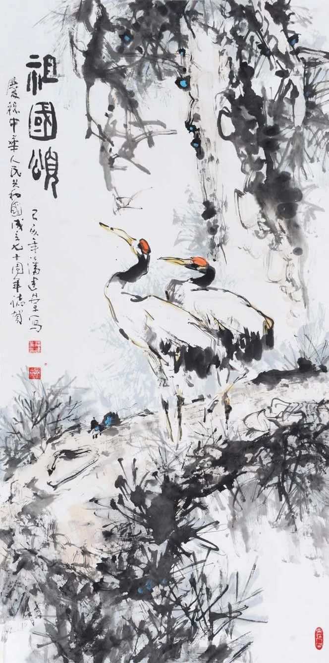 作品《腾飞图》中,数匹雄伟遒劲豪放秀美的奔马风驰电掣,呼啸而来,画面中不着丝毫背景,骏马在奔腾间擦出凌厉的似云似雾似风似电的淡墨,让观者感受到场面恢弘奇崛,撼天动地。欣逢盛世,祖国繁荣昌盛,作者澎湃激越的心潮,铿锵峥嵘的笔墨,演化为曳电生风撼人魂魄的神骏,在神州大地上协力向着明天、向着太阳奔腾跃进。《胜似闲庭信步》《天马图》《雄风》《洗礼》等作品显示出“斯须九重真龙出,一洗万古凡马空”的境界,均充盈着灵气、力量、情趣、真美,充满着艺术生命力!