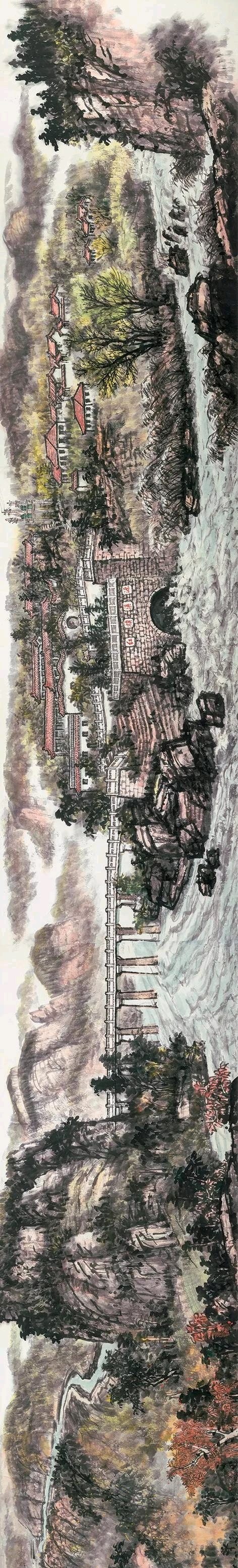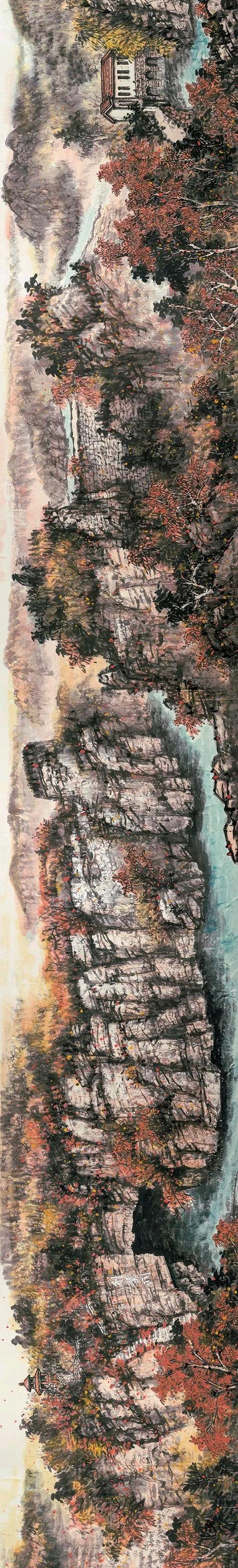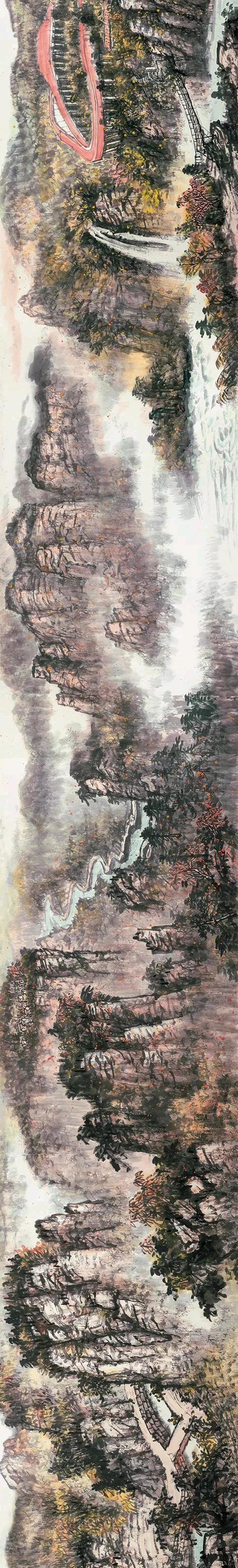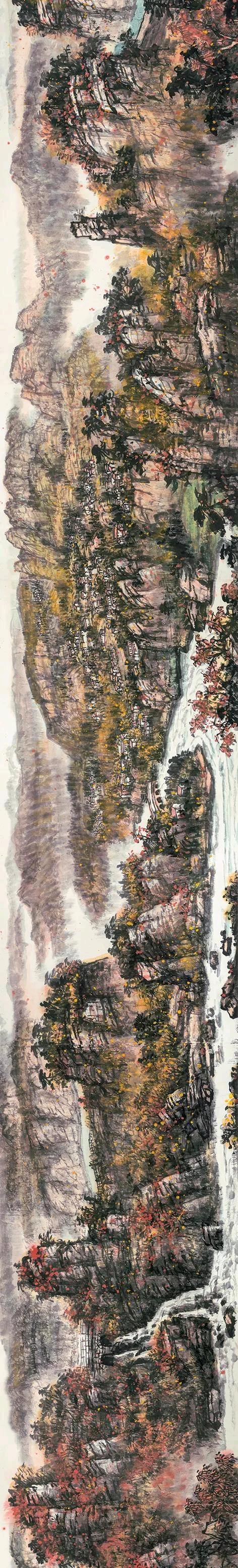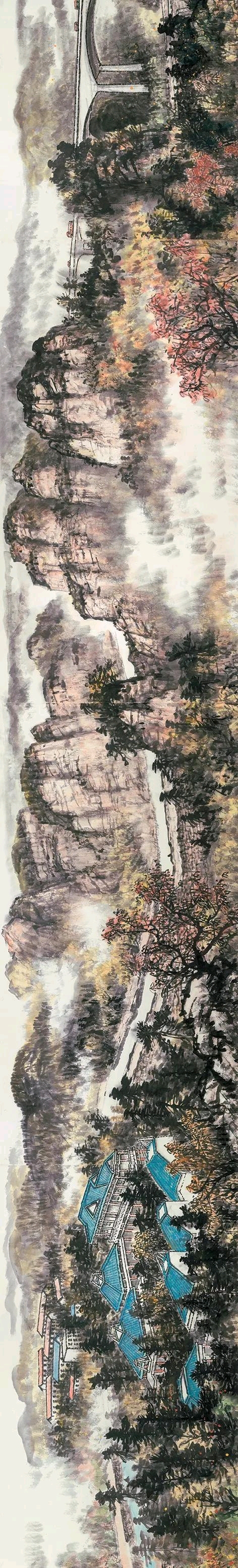 这件鸿篇巨制在整体布局和绘画元素上,涵盖了中国山水画几乎所有的细节,山峦起伏与引水工程纵横铺陈相互融合,形成全景鸟瞰式构图,画面宏大,气吞山河,以艺术形式再现“人工天河”这一人类奇迹,它不仅仅是一幅画,更是一首用笔墨绘就的史诗,堪称传世之作。2022年7月22日,在山西美术馆首展面世后,即引起轰动,受到社会各界广泛关注。