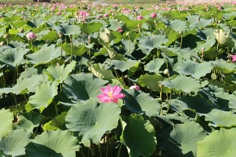 八月,大同浑源古城。山西神溪国家湿地公园正以一派生机盎然的景象,交出一份亮眼的生态治理答卷——300余公顷湖面上,碧绿荷叶层层叠叠如绿毯铺展,粉色荷花亭亭玉立似仙子凌波,微风拂过,花叶摇曳生姿,将“接天莲叶无穷碧,映日荷花别样红”的诗意画卷实景呈现,不仅吸引众多游客前来赏景打卡,更成为流域生态治理成效的生动注脚。