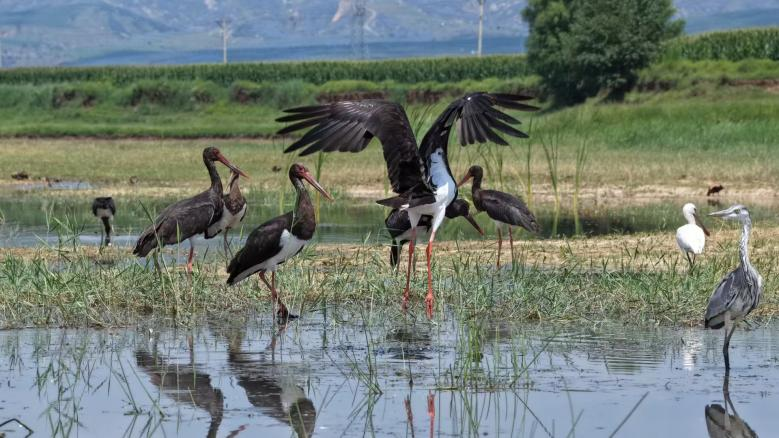 如今的神溪国家湿地公园,生态价值持续释放,成为名副其实的“鸟类天堂”。国家一级保护动物黑鹳时而在水面低空盘旋,国家二级保护动物小天鹅舒展翅膀轻盈嬉戏,山西省级保护动物普通夜鹰、黑枕黄鹂、苍鹭、金眶鴴等多种珍稀鸟类在此筑巢安家、繁衍生息。每年春季和初冬,成群结队的大天鹅还会在此停歇、休整、补充食物,洁白的种群与碧绿的湿地相映成趣,场面十分壮观。