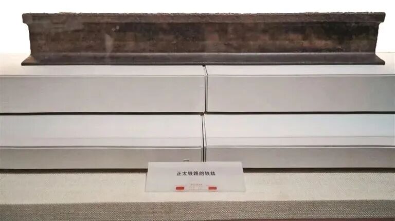 百团大战纪念馆陈列的这截铁轨,来自1940年的正太铁路,它长65厘米、宽9厘米、高8厘米,重约20斤。这截铁轨虽然很短,却承载着一段血与火的历史。