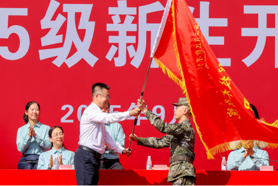 会上,姜俊兵向军训团授旗,叶玉刚下达了2025级学生军训命令。