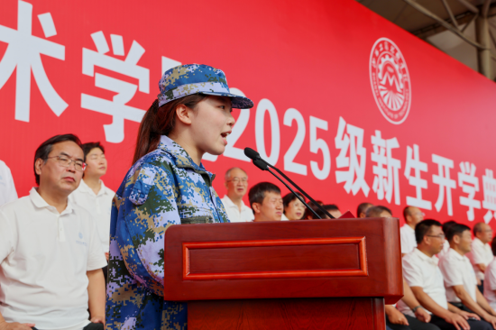 本科生新生代表、经济与管理系2025级投资学2班翟诗悦代表全体新生承诺,将坚定信念、志存高远,刻苦钻研、练就本领,砥砺品格、全面发展,用汗水浇灌青春梦想,以实干笃定前行步伐,努力成长为真正堪当民族复兴重任的优秀工程技术人才。