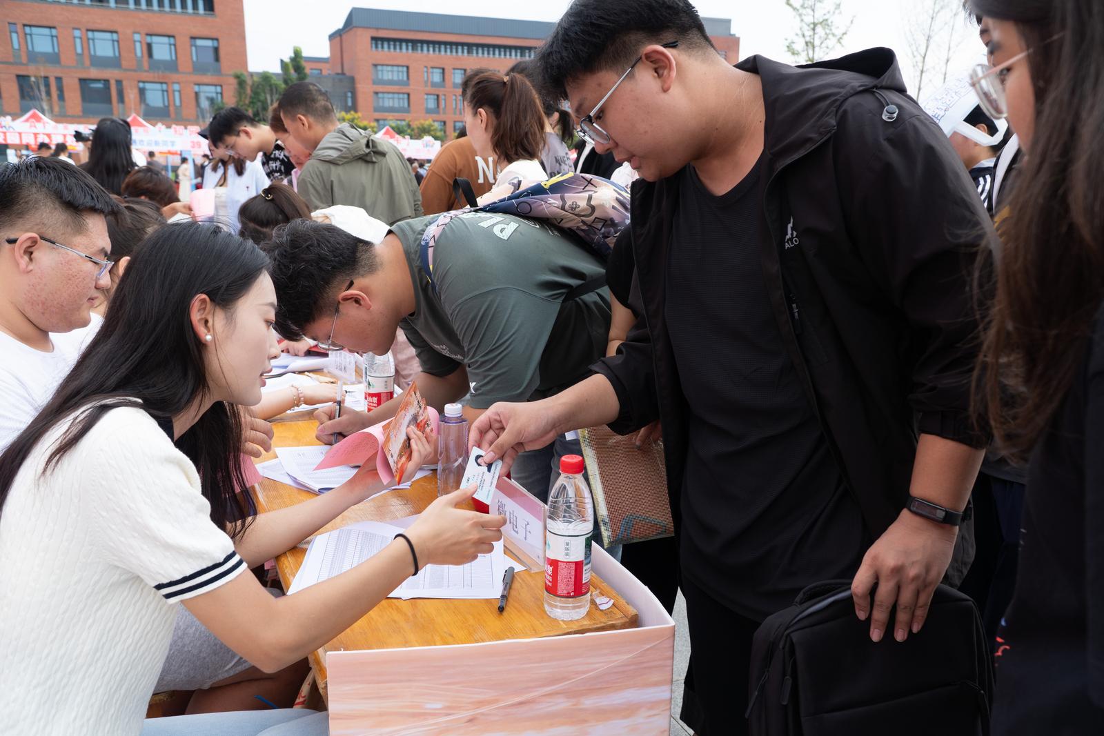 12日上午,学校图书馆前门票发放工作井然有序。领取门票后,家长和新生们纷纷驻足文旅宣传区,听工作人员介绍壶口瀑布的壮丽景色与人祖山的人文历史,并品尝当地特色农产品。现场还特别设置了文创产品、非遗项目和农特产品展区,展现了吉县丰富的文旅资源。