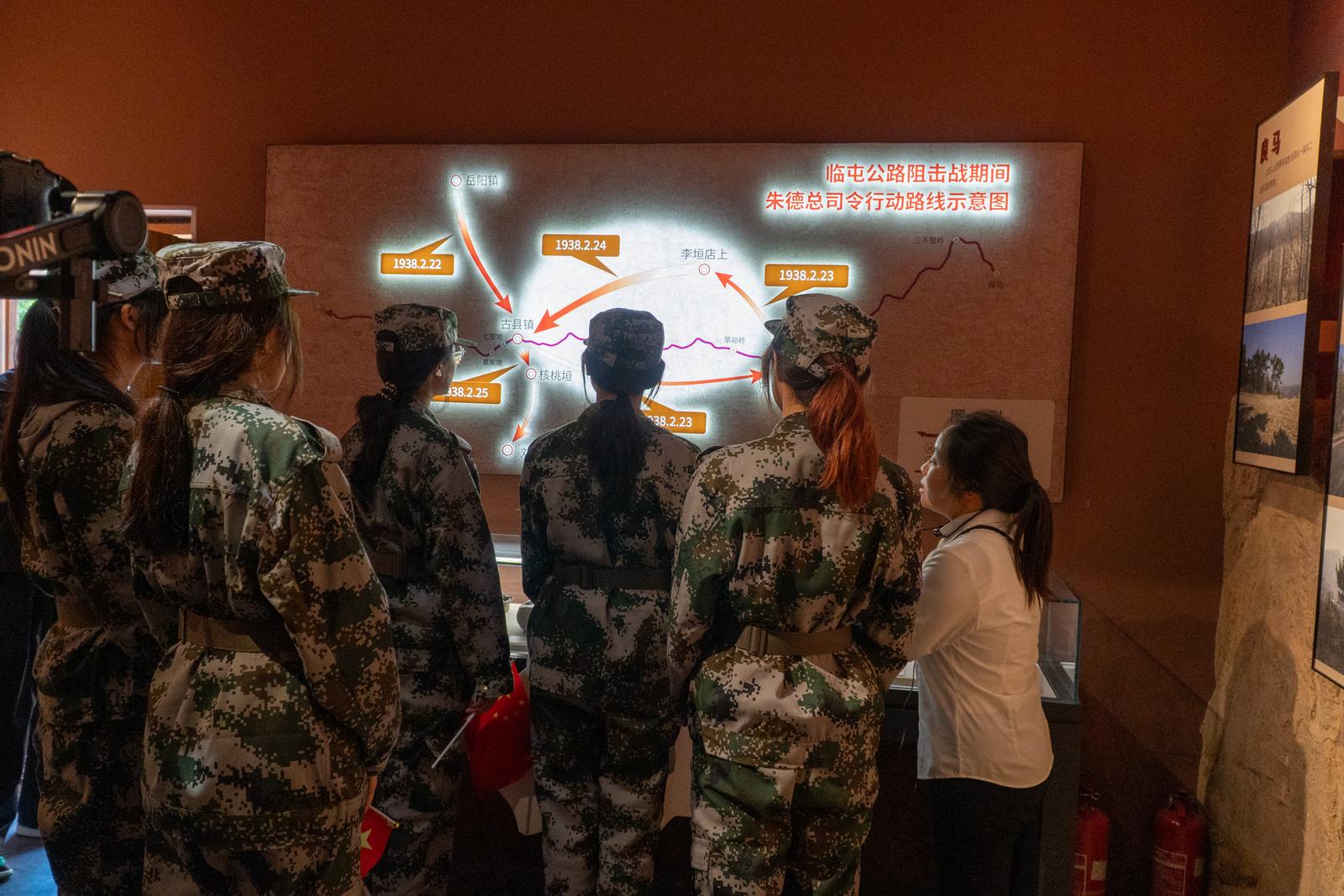 师生们沿着先辈们足迹,沉浸式感受抗战岁月。在讲解员的介绍下,1938年朱德总司令率部艰难转战浮山、运筹帷幄、指挥抗战的光辉历史生动再现。大家在一砖一瓦中追溯朱德、彭德怀、左权等老一辈革命家深入群众、发动群众、宣传抗日的光辉事迹,深刻感悟到军民团结在抗日战争中发挥的作用。