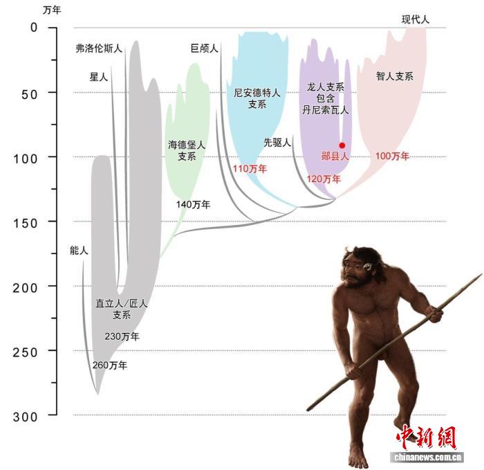 研究团队进一步以郧县人作为关键校准点,构建出全新的人属系统演化树,再借助先进科技手段分析,推算出各个人类支系的分化时间。他们研究发现,智人、龙人和尼人这三支的分化发生得非常早,虽然早于目前化石记录所示,但与基因组数据推测的结果高度吻合。